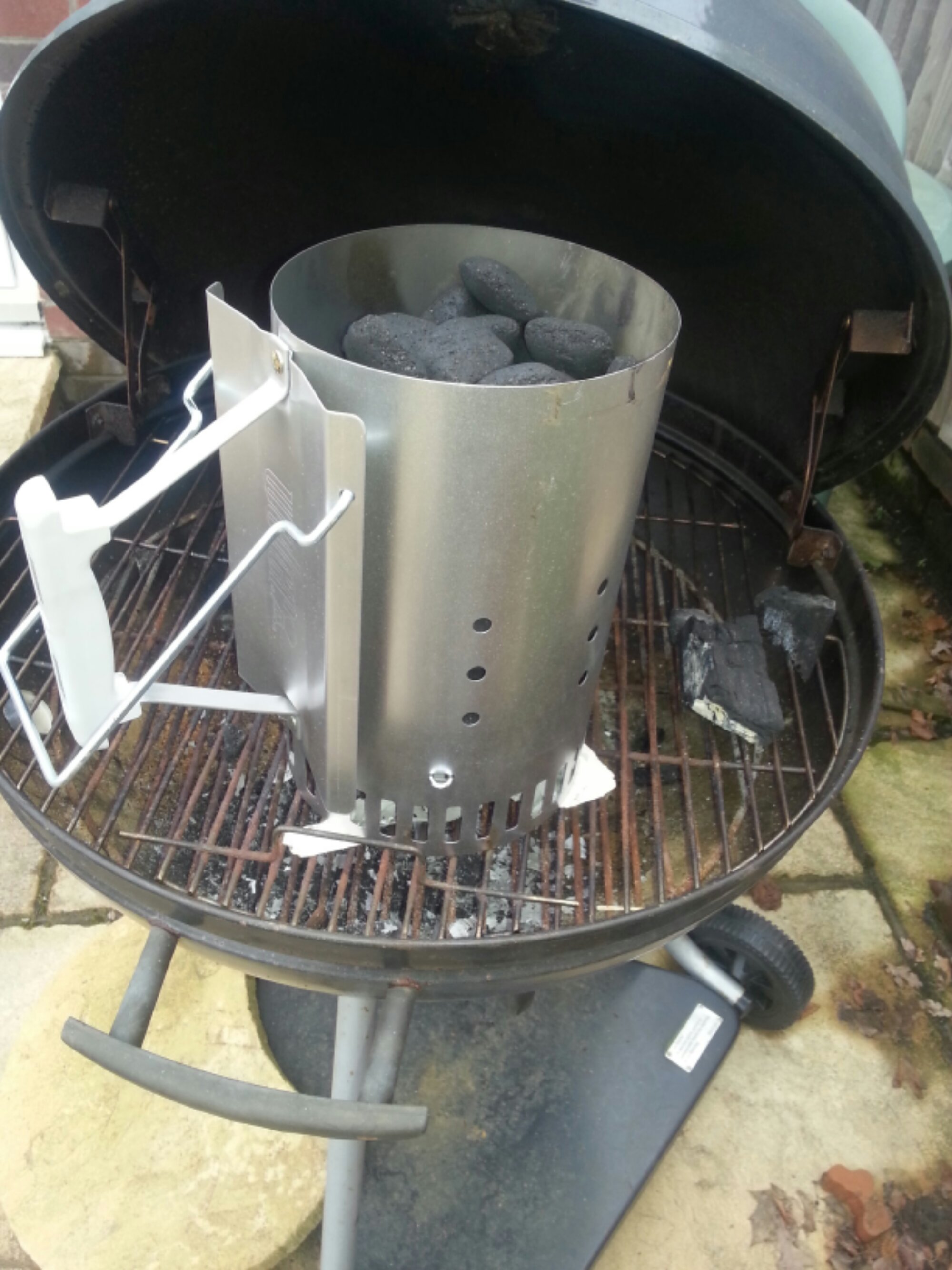 Wood chips are added to the charcoal basket to get that all important smokey flavour and these can be placed in the charcoal basket via a side door. I used a metal firebox into which I placed pre soaked wood chips (about 30 minutes in water) before adding to the coals.The idea behind this is to enhance smoke levels and ensure the chips do not burn to quickly.