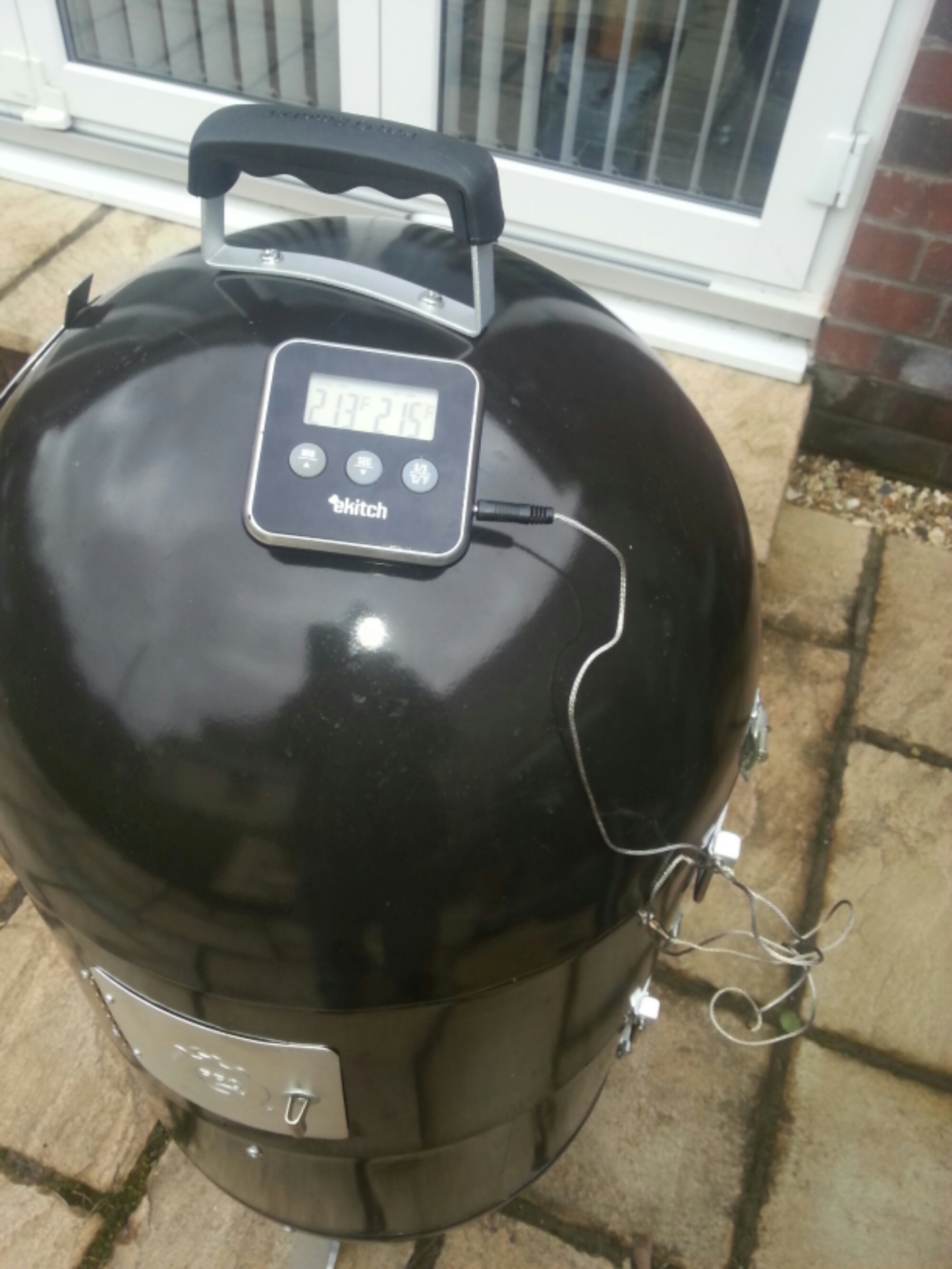 The result was that the required 200+ degrees fahrenheit temperature was reached quite quickly (15 mins max) and I was able to maintain that temperature for over 4 hours. During cooking the temperature can be regulating using the three bottom vents (opening them increases the temperature and closing them reduces it). The top vent should always be kept open. It required minimum tinkering to get a stable 210 degrees. Over long cooking periods the water bowl may need to be replenished as on my 4 hour plus cook time it nearly ran dry at about the 3.5 hour mark and I had to added more water.
