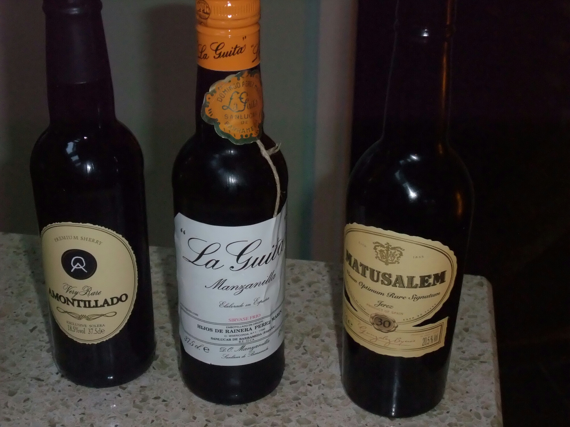 The ones Mrs. SF and I tasted this weekend were a manzanilla, a amontillado and a Oloroso dulce (sweet).