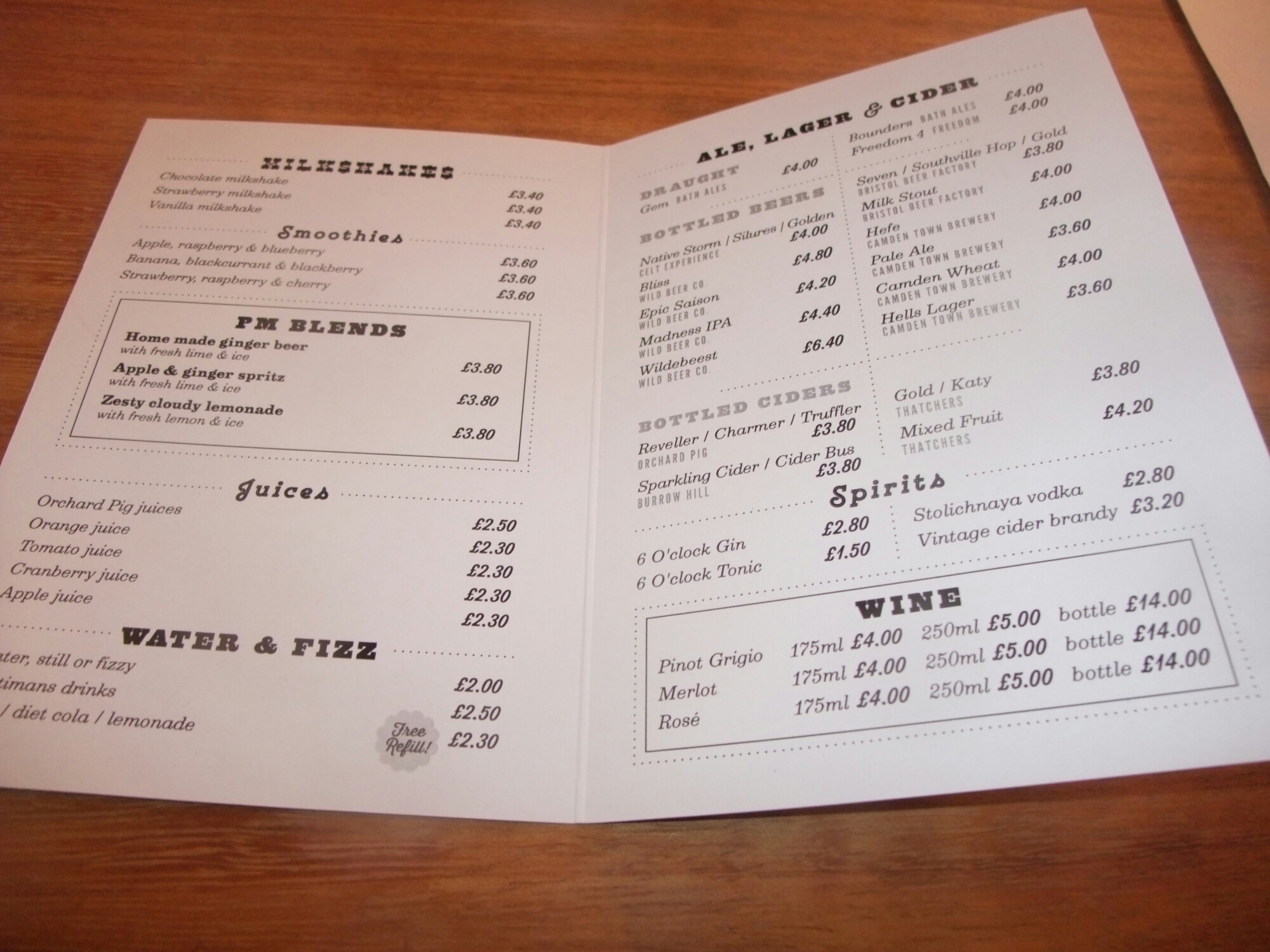 There is also a nice looking drinks menu that focuses on craft beers (great with pies) and also has a wide and good (if a bit pricey) set of soft drink options.
