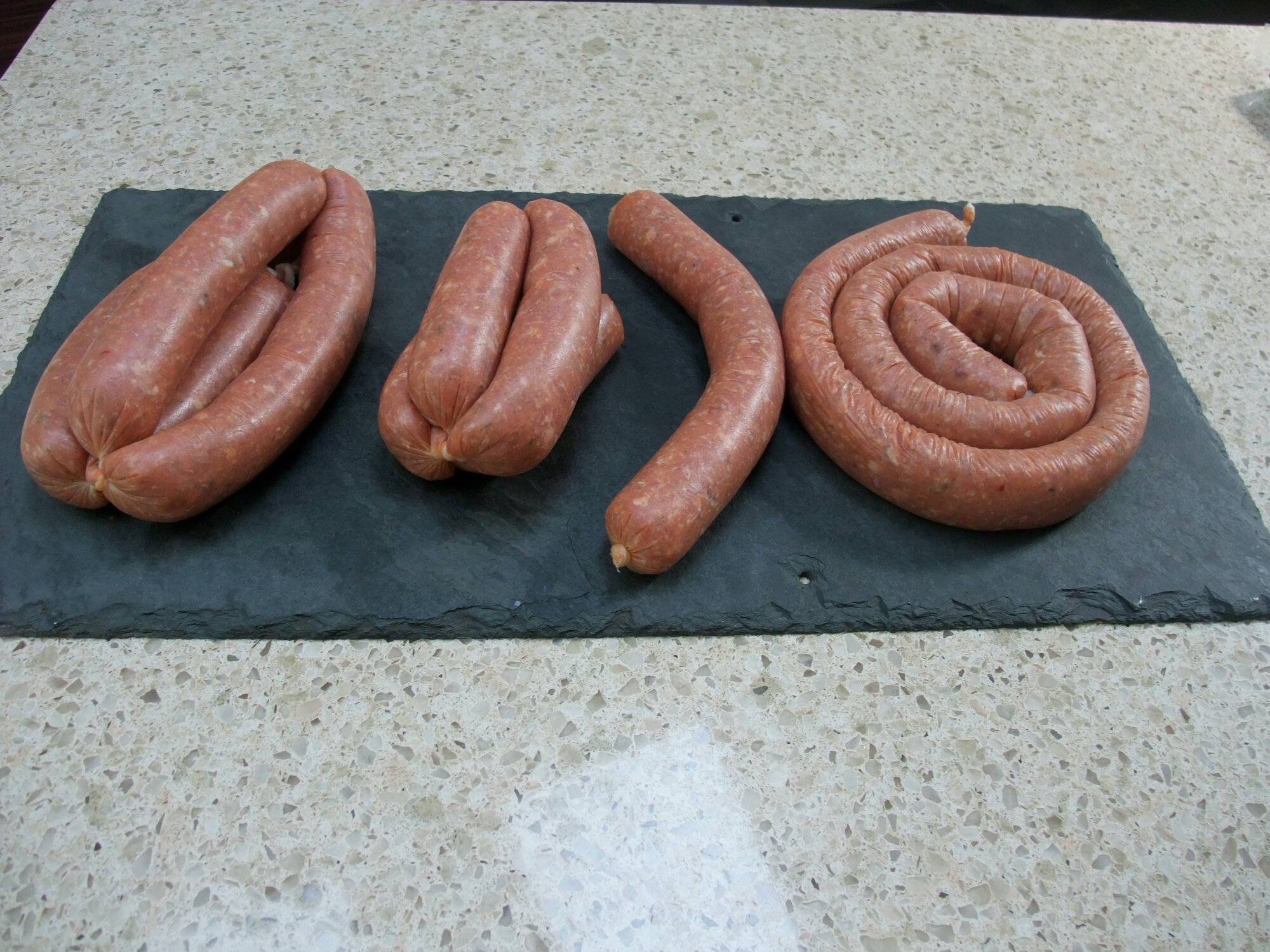 A sausage can be a truly wondrous parcel of loveliness when made with quality ingredients. It can be one of life’s great foodie pleasures. Conversely it can be a vehicle for hiding cheap rubbish ingredients. A good sausage is a thing of beauty and is revered in all major cuisines (I was amazed to read that China has more sausage varieties than France, Germany, Spain and Italy including salamis etc put together). A bad sausage is an abomination – you know that horrid meat sack filled with a vile pink paste of gawd knows what and which you eat at your peril.