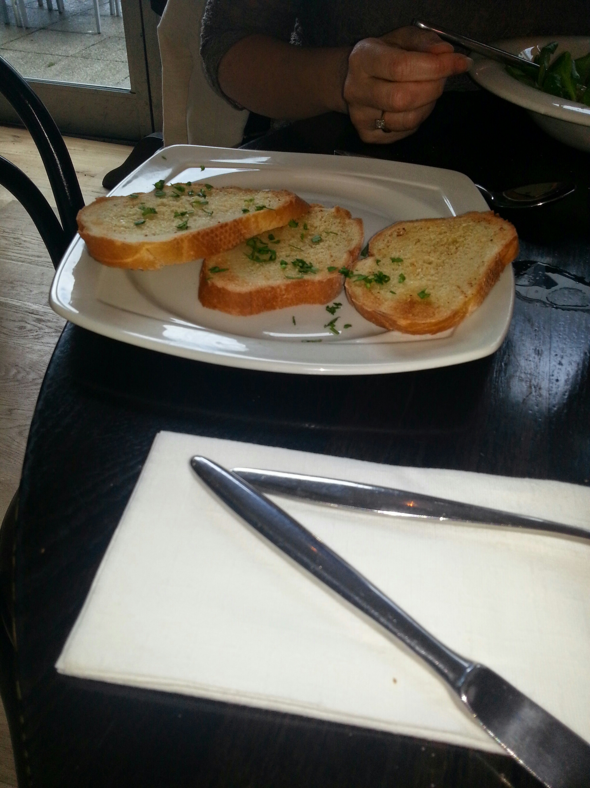 The portion was miniscule with the parfait tasting of zilch, being two tiny slivers of mediocrity. If there was brandy in it it was undetectable. The chef must have got bored, as the brioche (no hint of cinnamon in it – I was dubious about this so probably just as well) was only toasted (barely) on one side. Seriously, what cook can’t toast bread properly. The chutney was watery, insipid and tasted primarily of cheap vinegar. There was tomato in it, but no sign or taste of any rhubarb.
