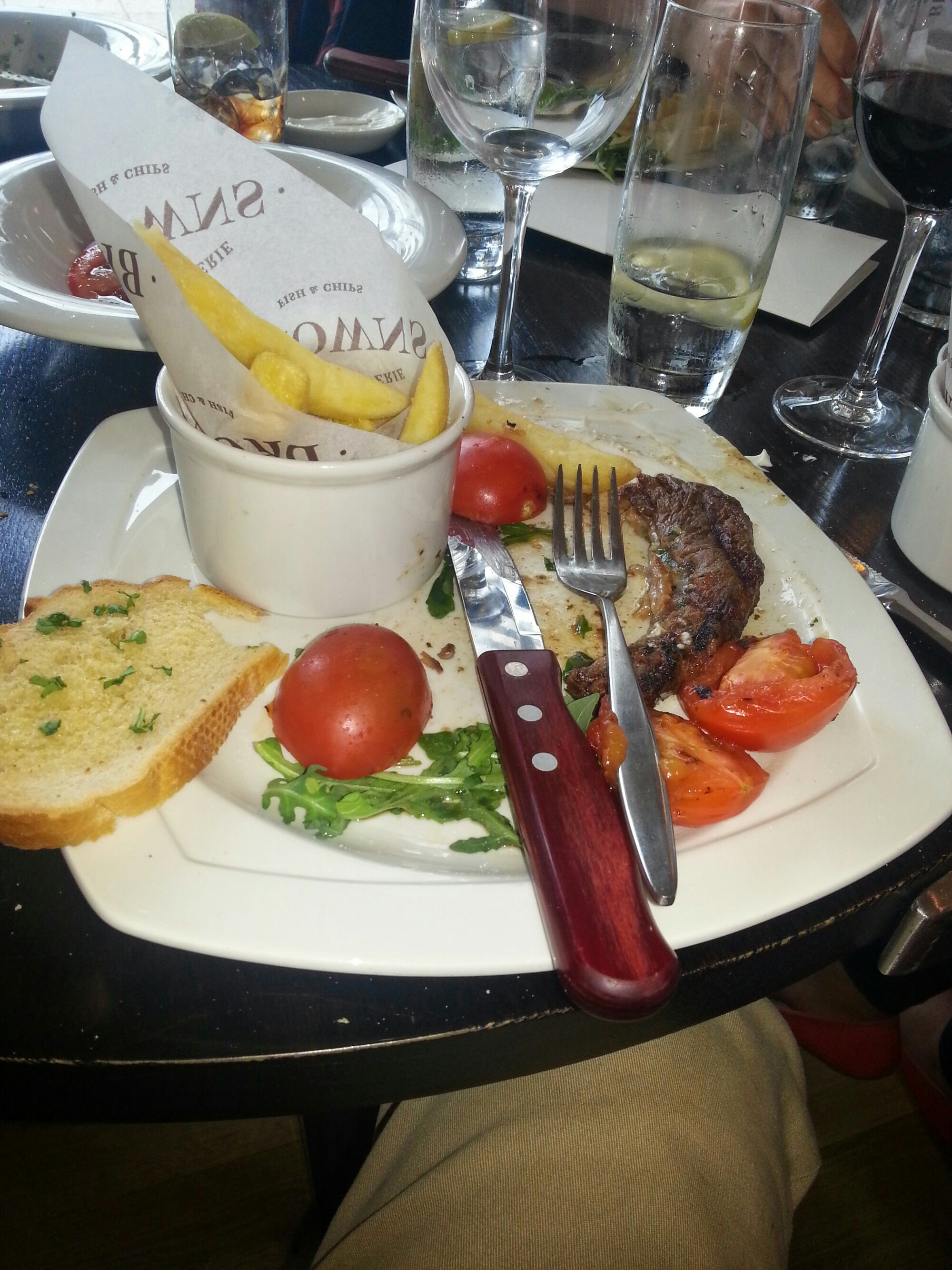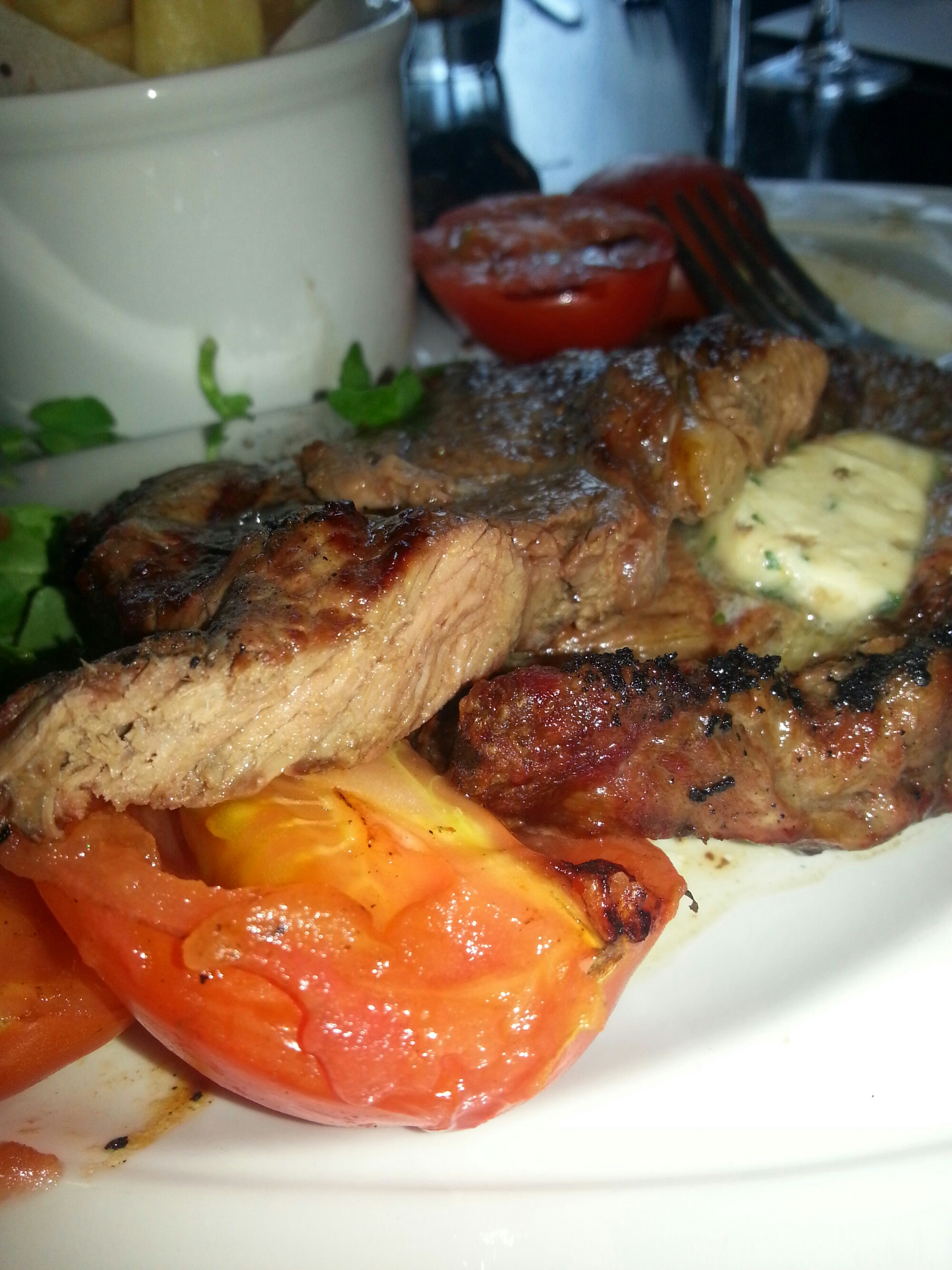 It had no flavour to it and the 28 day aging (mhmmm I wonder) had added nothing. This was a very poor quality piece of meat. The plate came with a comedy steak knife, but a hacksaw would have been more appropriate bearing in mind the toughness of the meat.