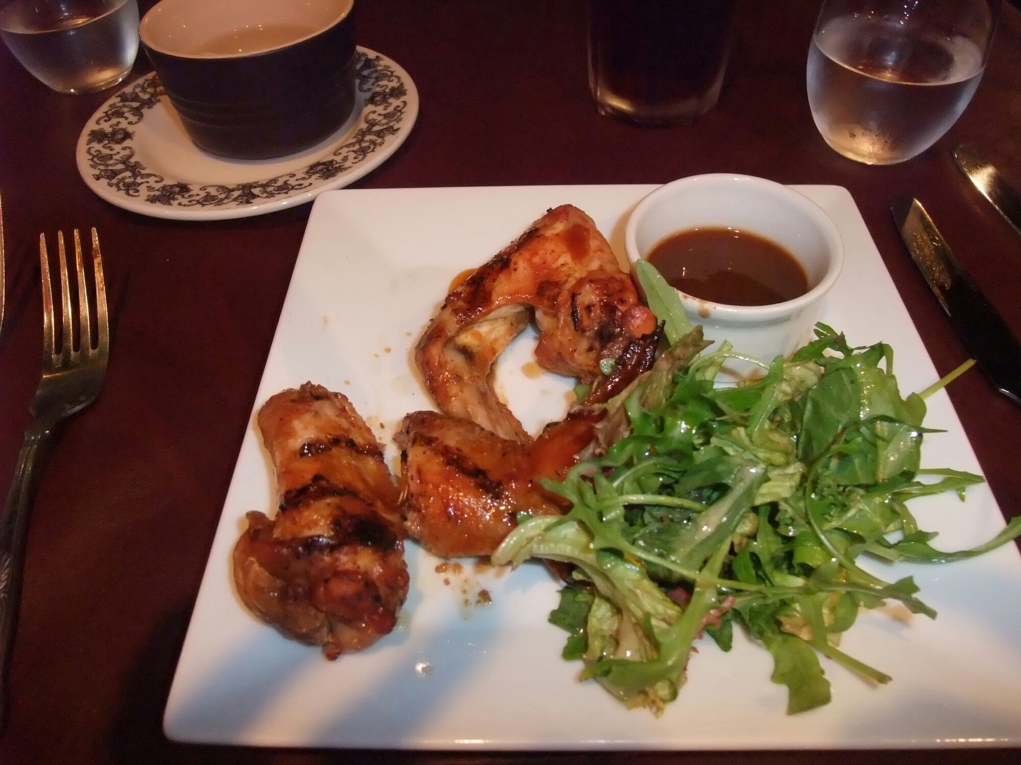 J had chicken wings which were a decent size portion and a perfectly ok, if slightly boring, dish. I ate one wing and bar from the skin being a bit flabby (I do so not like that) thought it was fine if a bit uninspiring.