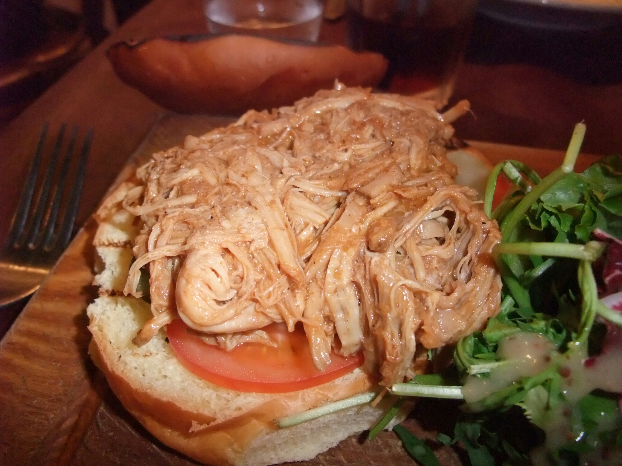 For mains, I did ask what the meat sandwich of the day was and on being told it was gammon I defaulted to my backup choice of the pulled pork burger and chunky chips. Funny, if the waitress had said baked ham or bacon I may have gone for it, but gammon always makes me think of a ghastly 70s meal involving a very salty slab of rubbery daygloo pink meat and a canned pineapple ring.