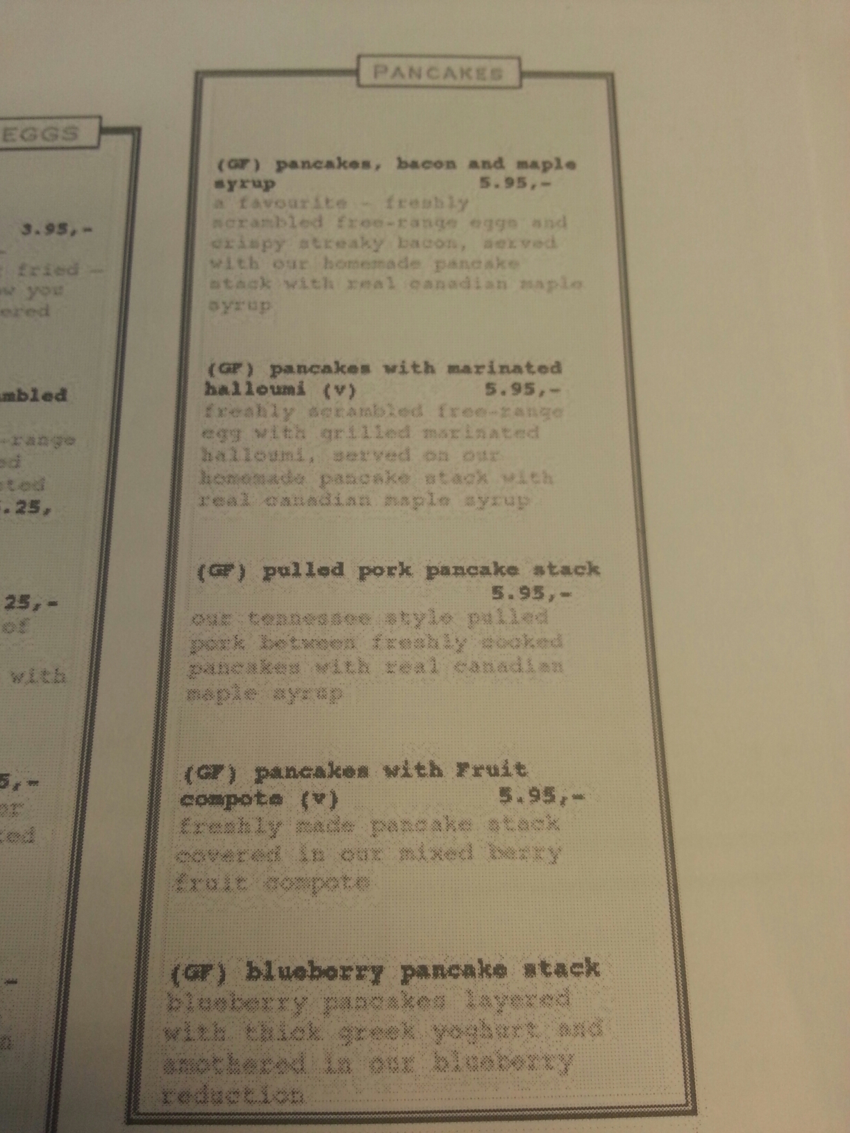 The tradional Welsh cawl (a brothy stew, usually containing lamb) on offer also looked very good and I very much liked the sound of the pulled pork pancake stack.