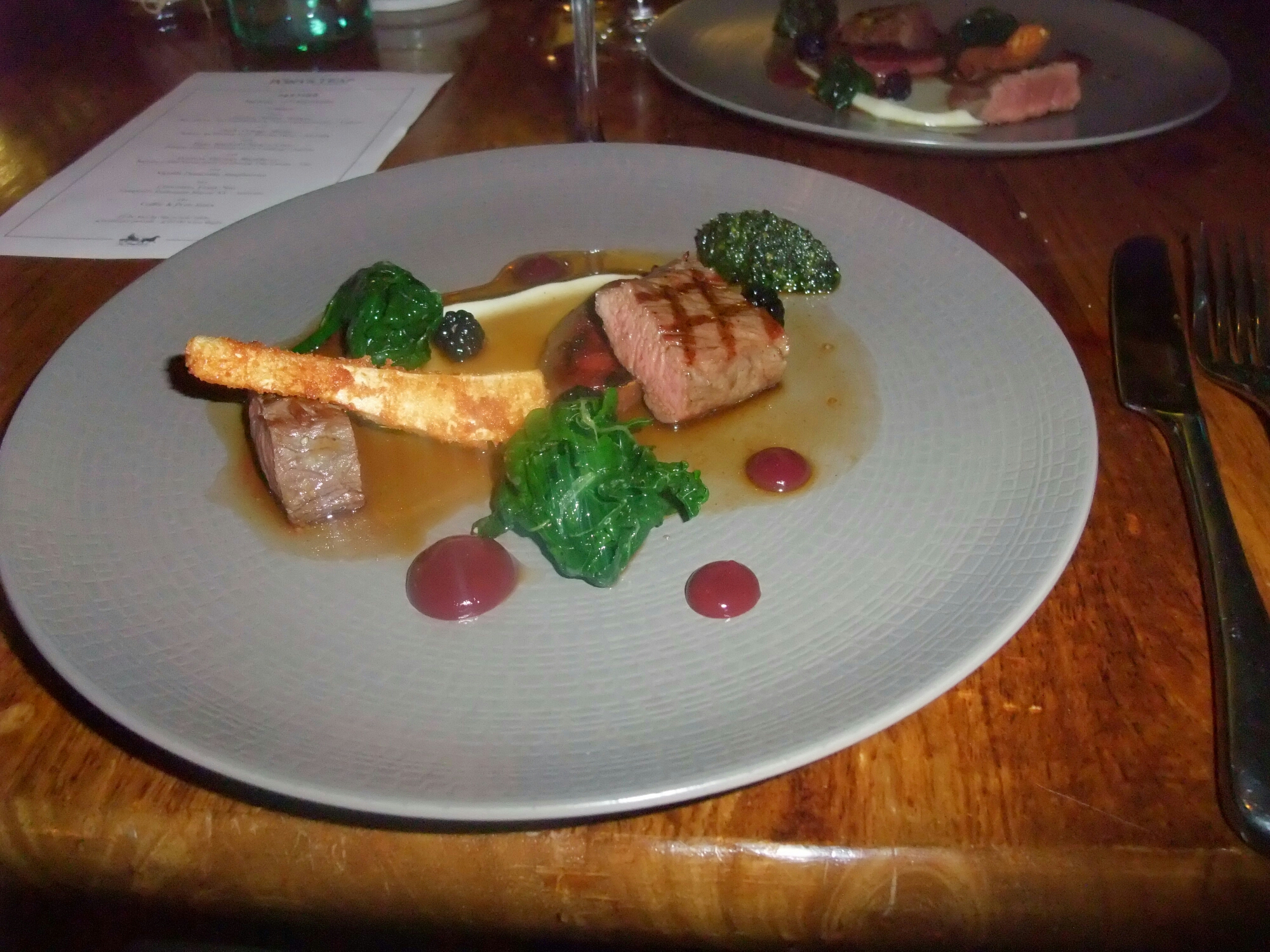Next up was perfectly cooked venison, with a ruby red core. This was accompanied by a parsnip puree and a crispy coated parsnip. Added to this was the meaty beefiness of a lovely bit of slow roasted ox tongue, the sweetness of blackberries and some iron rich greens. A nice dish which took advantage of locally sourced and seasonal ingredients.