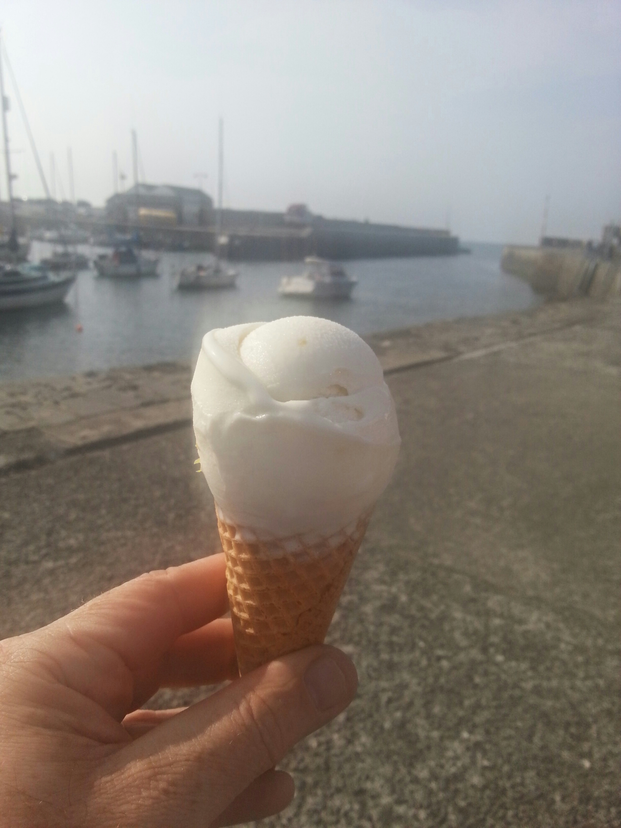 Afterwards we went out front for dessert in the form of a cone of lovely honey ice cream.
