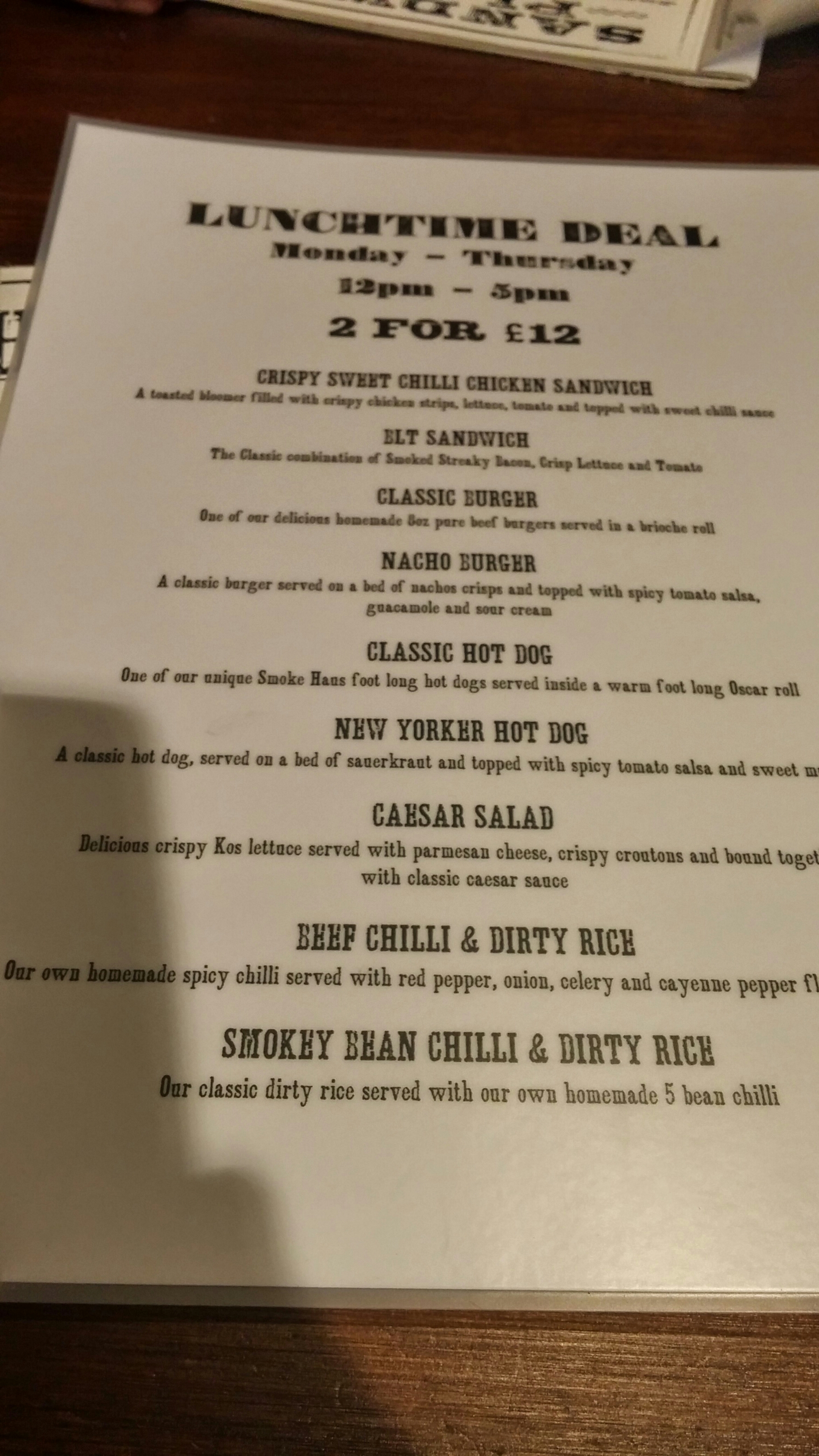 As stated above, they do BBQ staples (brisket, ribs, pulled pork) and whilst our choices didn’t stray into this aspect of their menu (portion sizes making anything BBQ related too much for a week day lunch, for us at any rate), I can’t say the non BBQ offerings have given me much hope that the BBQ stuff would be anything more than adequate at best (but I could be wrong).