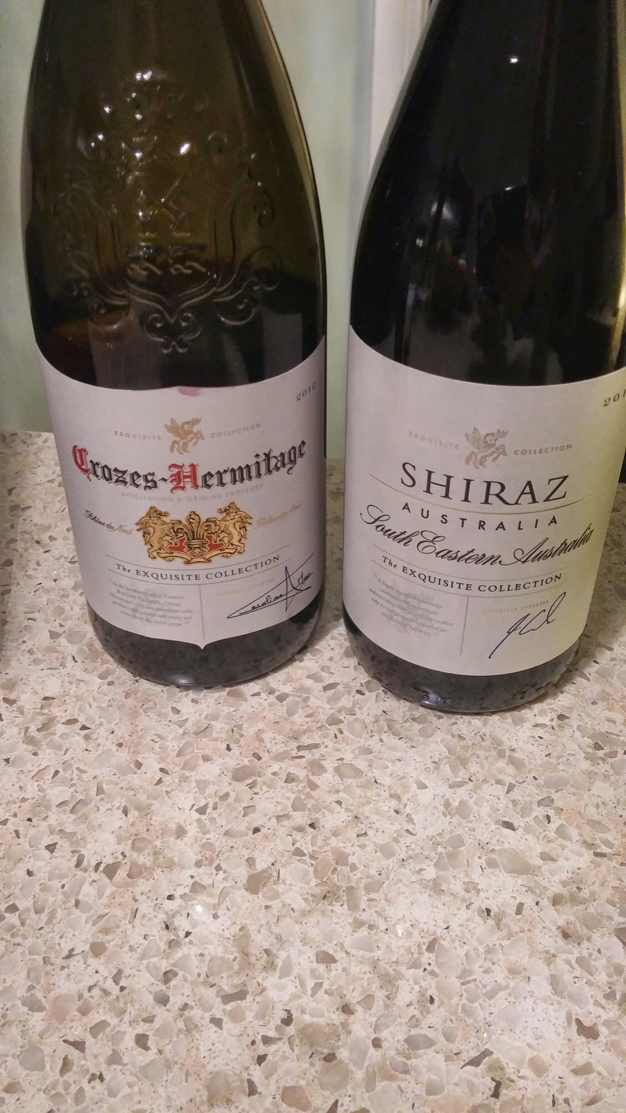 For this post, I set my sights very much at the lower end of the budget scale, buying bottles of both syrah and shiraz wines from the usually fairly reliable and reassuringly cheap “The Exquisite Collection” range from Aldi.