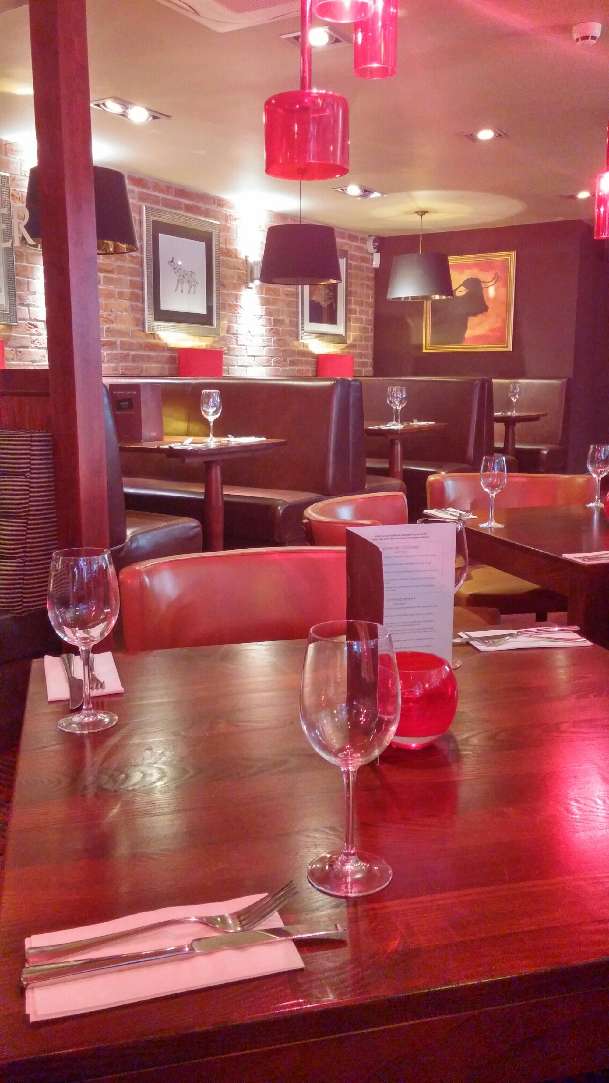Inside, it is quite American steak house. Banquettes, booths stripped brickwork – that sort of thing. Quite nice I thought.