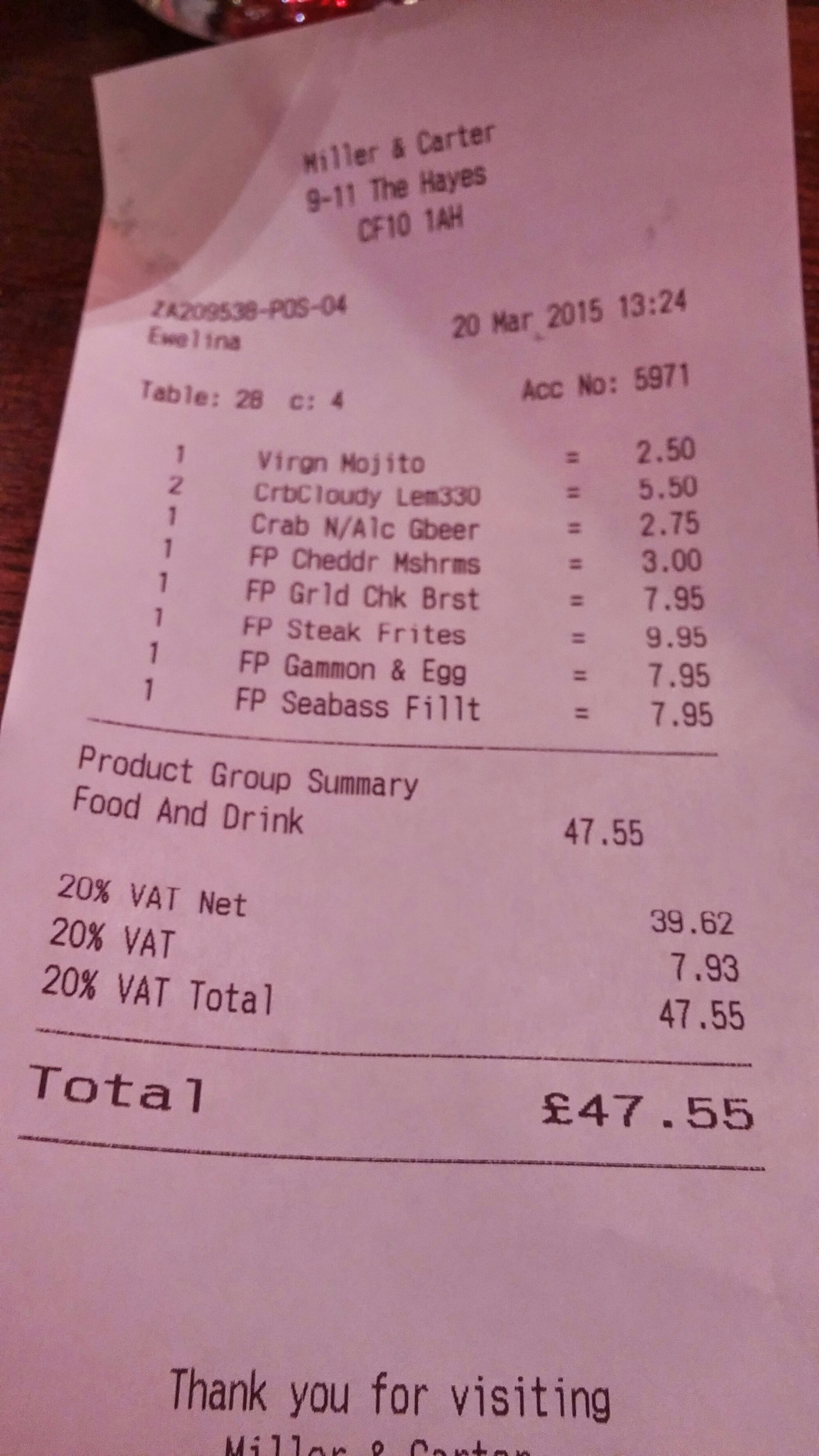 The damage was just over £45 (without tip). OK value, but again not fantastic for the quality of what we got.