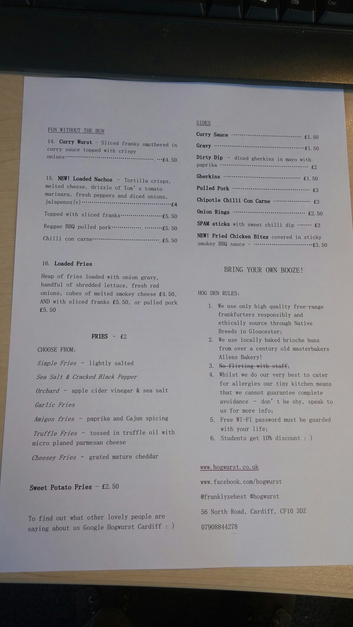 I raised this (to me perverse) inclusion with Hogwurst on Twitter, stating I loved the look of their menu bar from the Spam and indicated it would take some doing to make me eat, let alone like, Spam due to my bitter memories of the stuff. This challenged was duly accepted by Hogwurst and how could I then say no I am not playing ball or rather Quidditch (gulp).