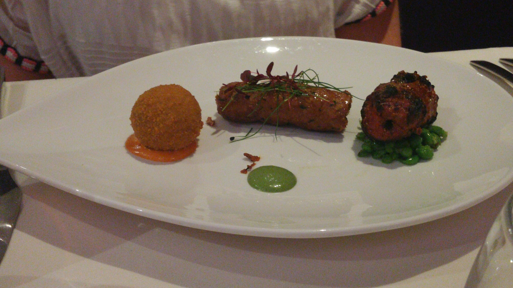 and a trio of lamb (£7.95) in the form of a sheekh kebab, a boti and a breaded fritter.