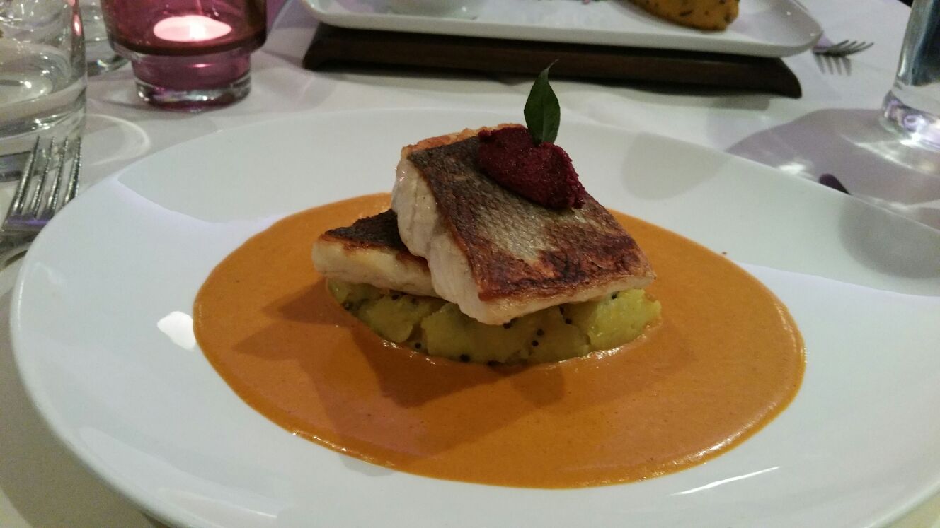 The two decent size fillets of pan seared seabass were perfectly cooked with a crispy skin and moist yielding white flesh. The fillets sat atop a flavoursome curry leaf infused mash and a great zingy sauce of raw mango ginger and coconut.