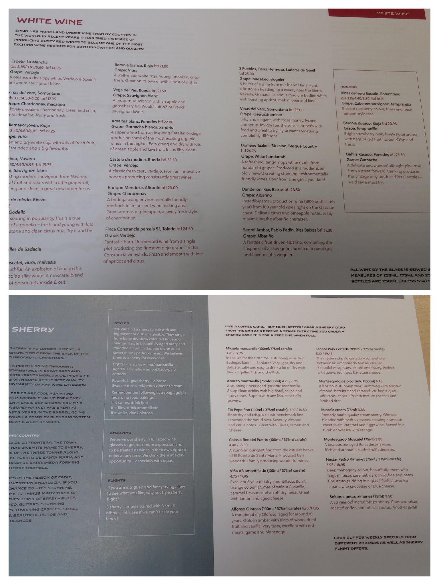 With the Galician stew, a glass or two of the Albarinos or manzanillas on the wine list would have gone down a treat if booze had been an option.
