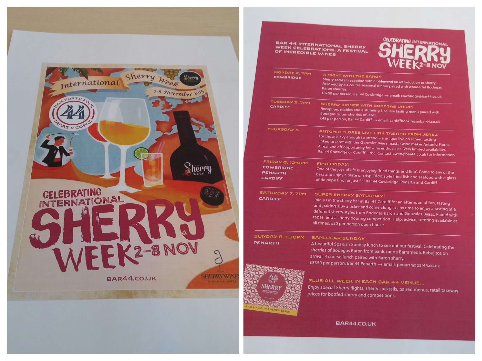 NB. This week Bar 44 are celebrating International Sherry Week – with a fabulous range of sherry related events (in Cardiff, Penarth and Cowbridge).