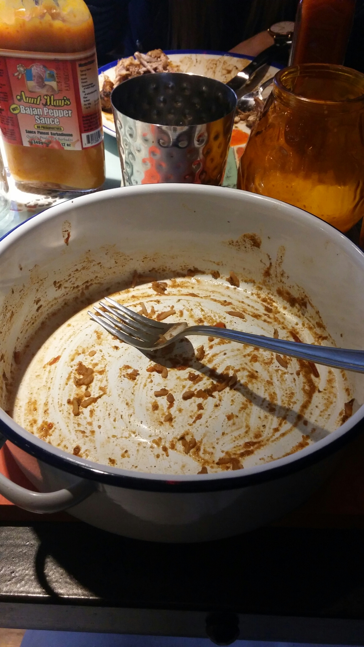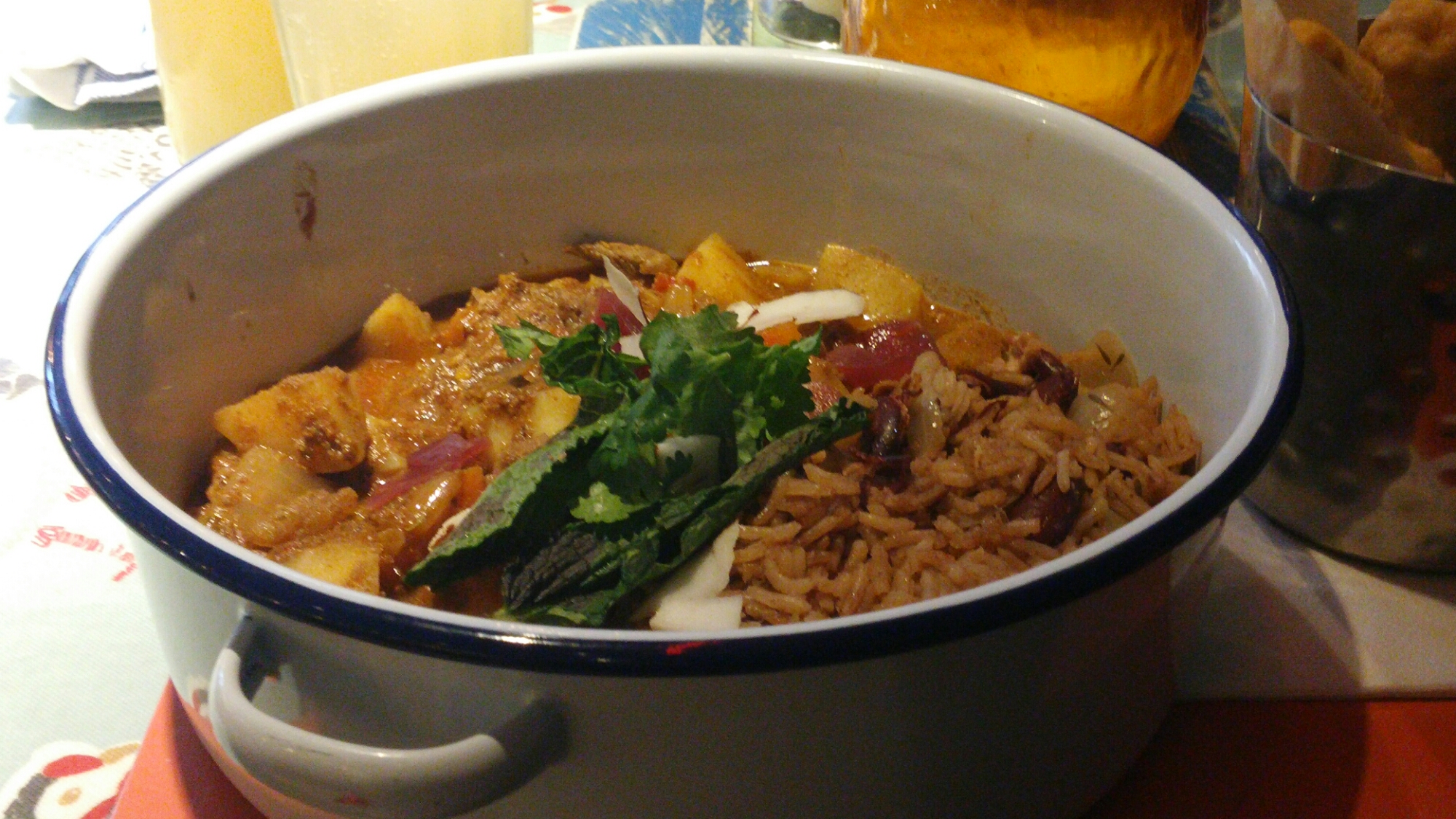 This was a substantial dish with plenty of goat, sweet potatoes and rice and peas, all served up in a big pot in a lovely spicy sauce.