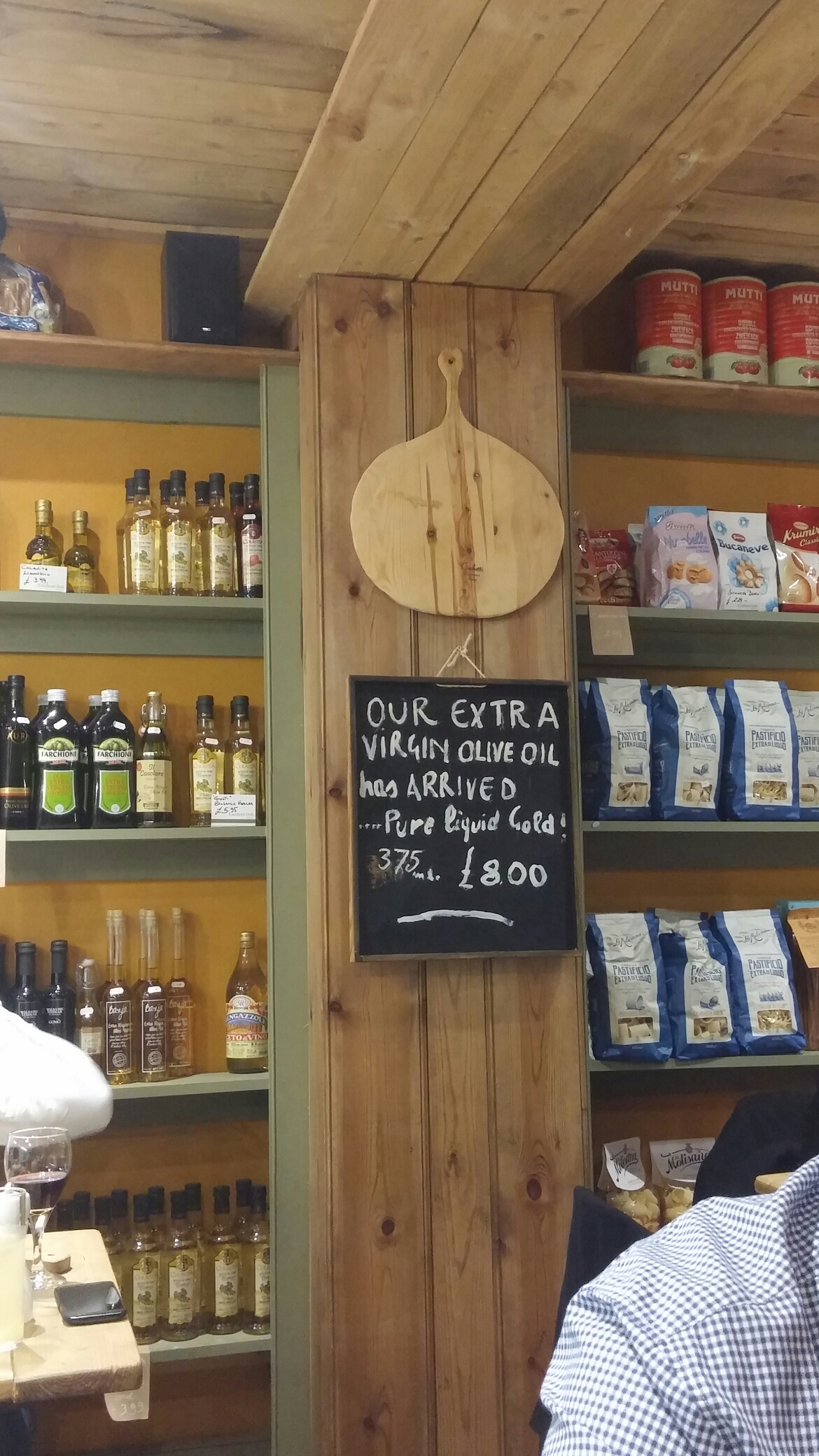 Deli by day, Italian diner by night (they actually serve food all day) Cicchetti has a rather charming rustic feel to it. We ate on a table with cans of tomatos and rather fine tins of anchovies behind us, the deli counter to our left and shelves of olive oils, pasta and wine to our front.