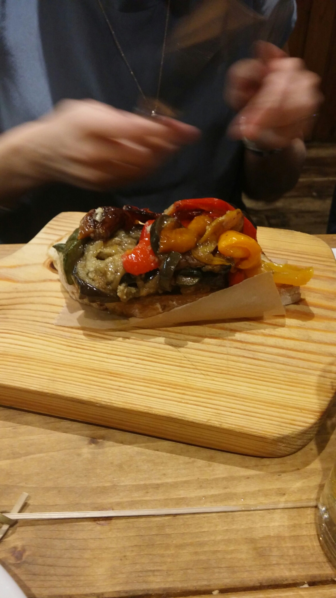 and a sort of vegetable bruchetta (one of the cicchetti on offer – not sure why it needed to sit on an enormous board) (£5.95)