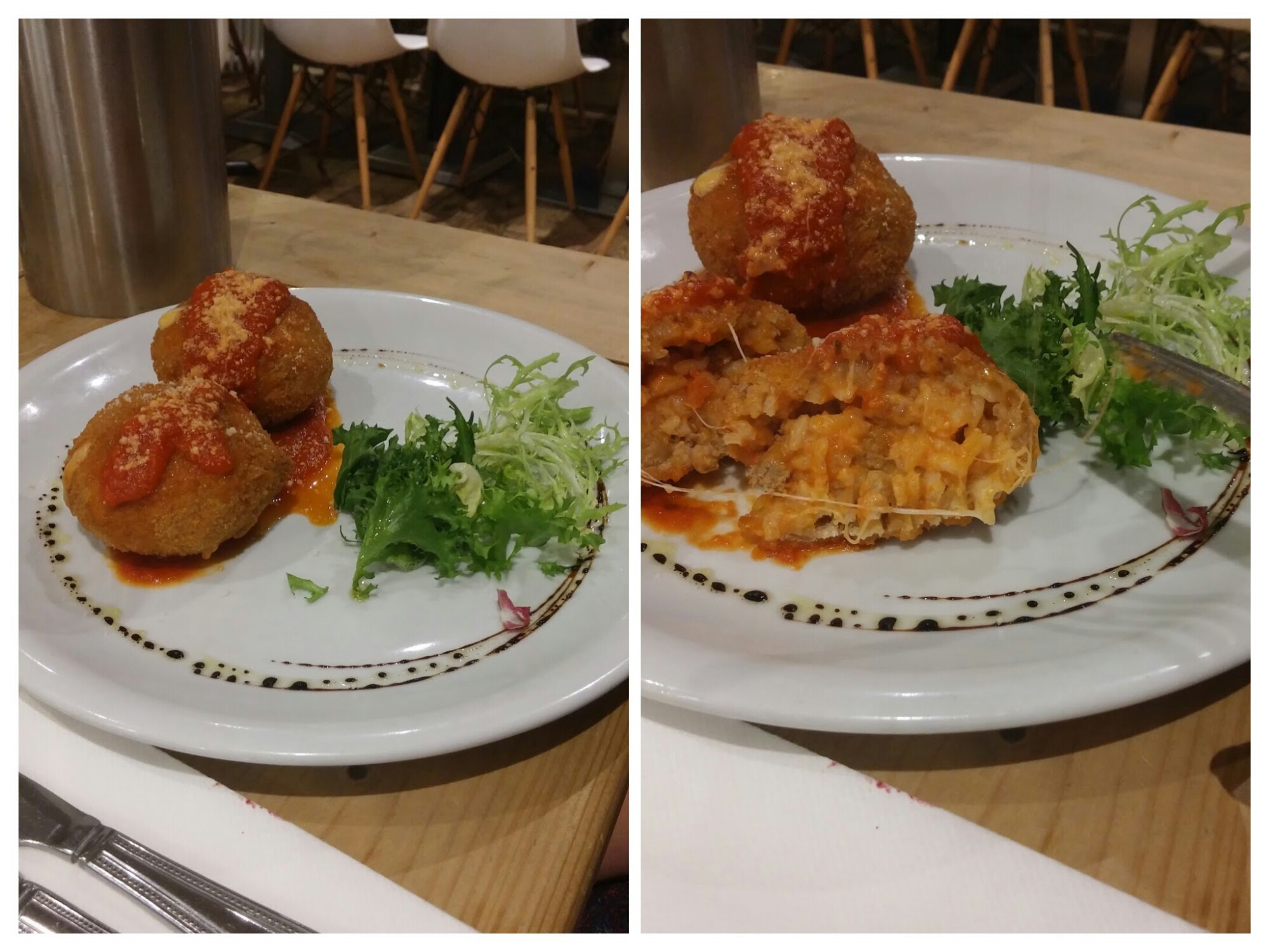 We ordered a mixed selection covering crisp on the outside and gooey in the middle arancini x 2 (£4.50)