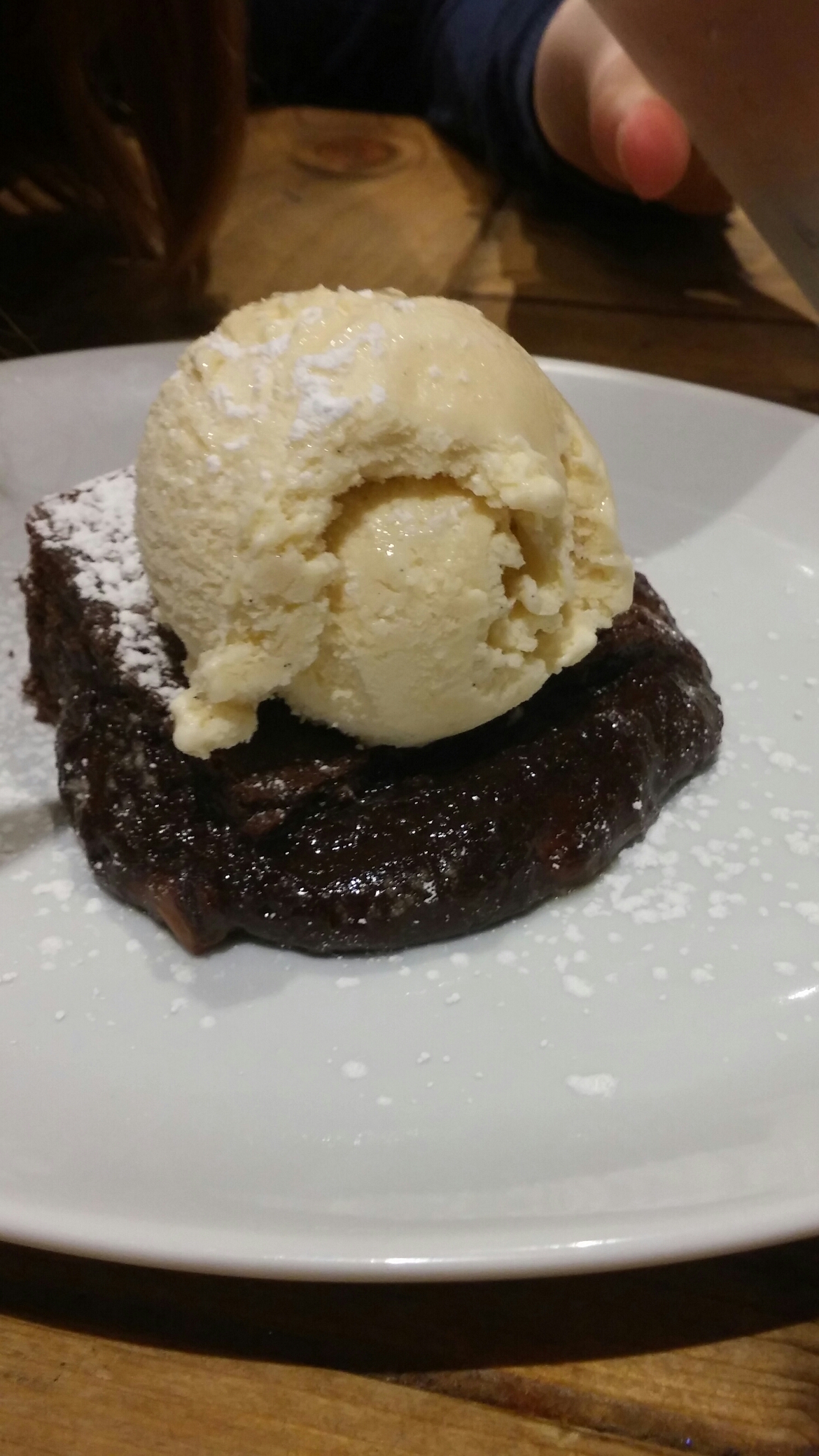 The one pudding ordered was a brownie which had a nice gooeyness to it, but a somewhat pedestrian ice cream accompaniment (from the small bit I was allowed).