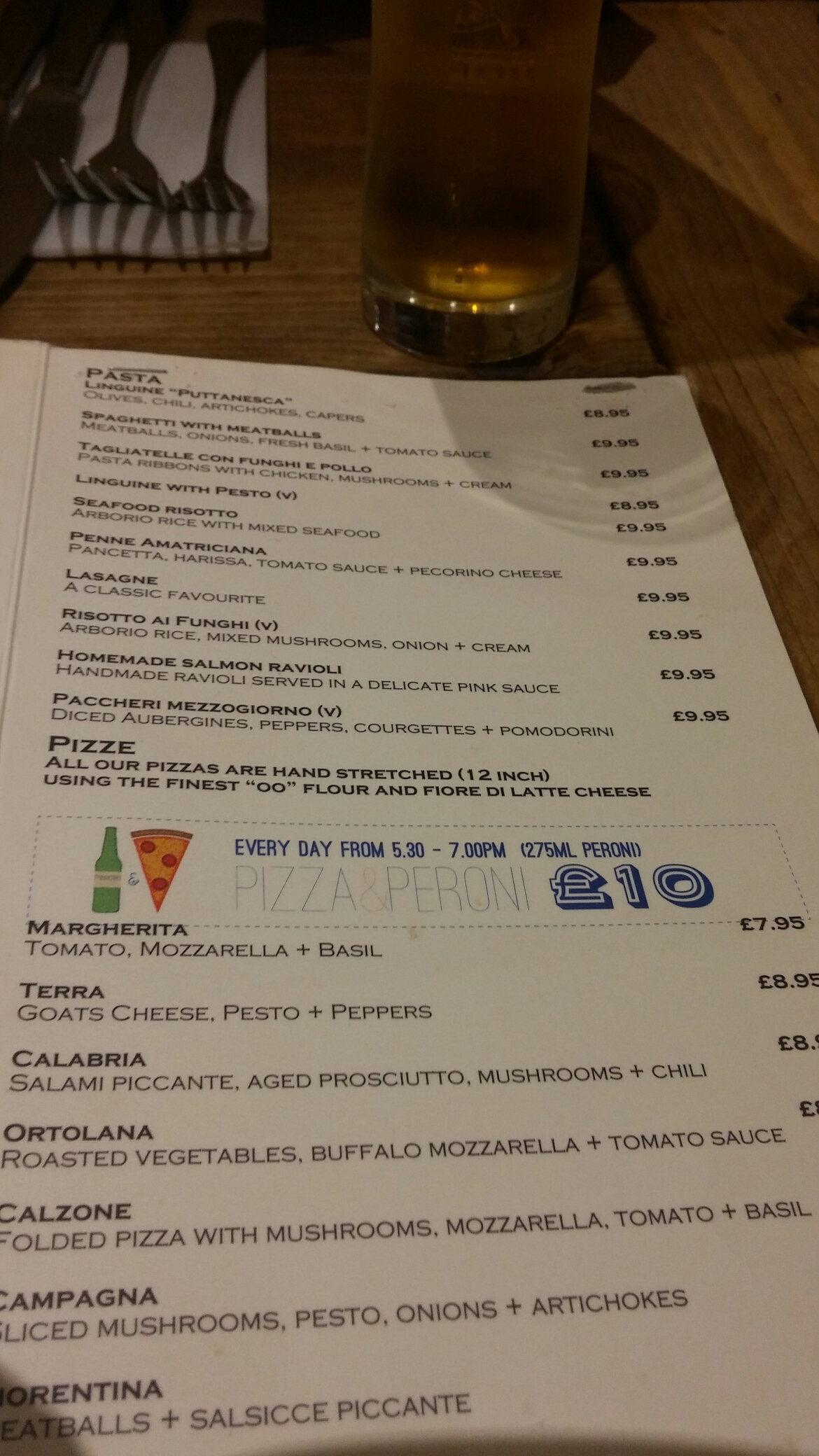On the booze front they have a couple of Italian beers and an Italian focused wine list.