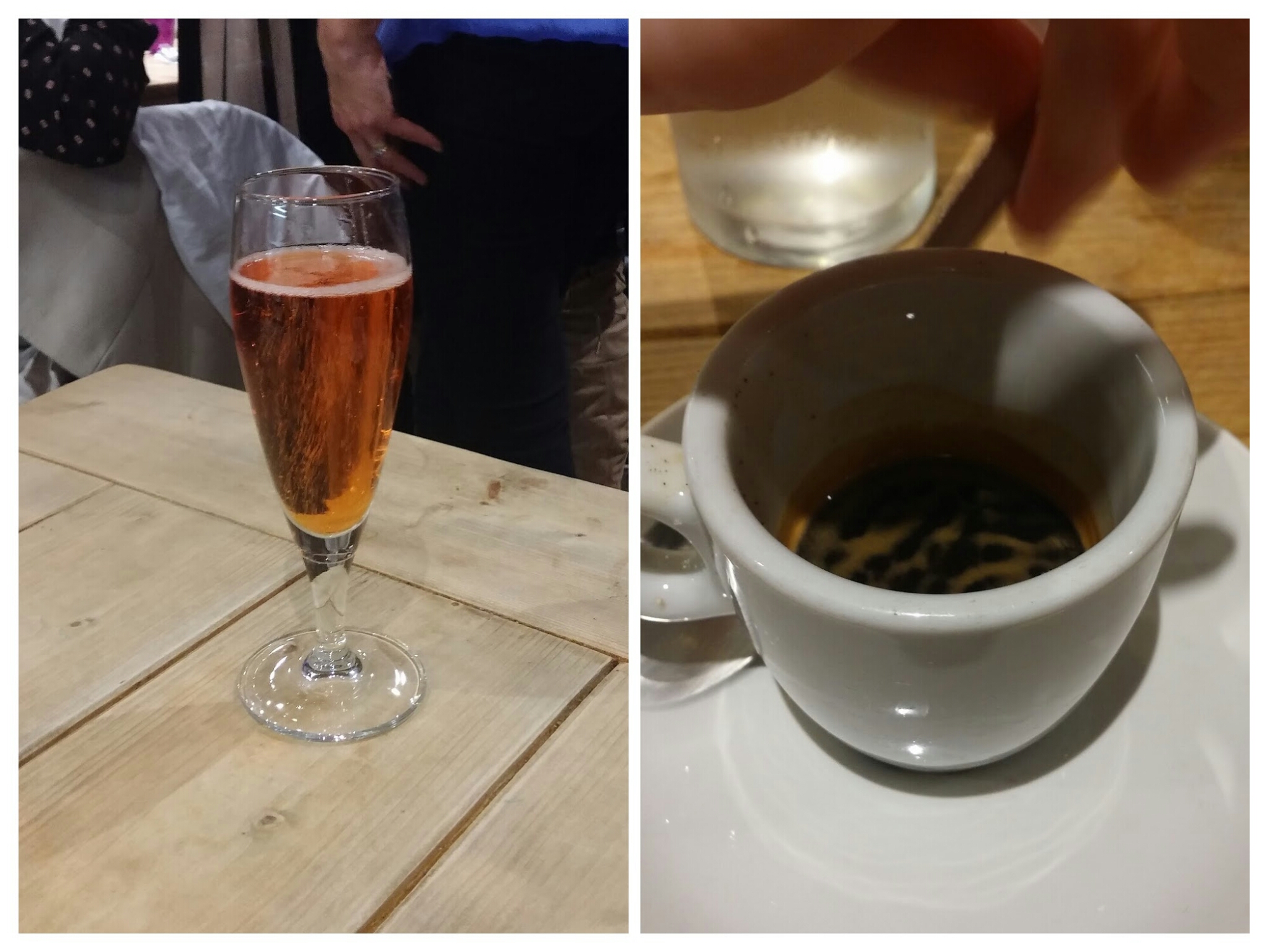 Proceedings were rounded off with a decent espresso and an aperol (the latter I thought odd to order as a digestive rather than an aperatif – not for me but pronounced as very nice)
