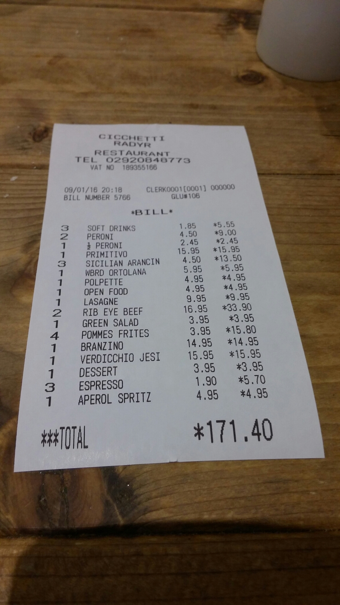 Notwithstanding a couple of issues (overpriced/undersized steak, the red wine and veg mix ups), we all enjoyed our visit to Cicchetti. A solid Italian in the Cardiff burbs and a credible alternative to my local Italian – ish restaurant in Llandaf, Porro.