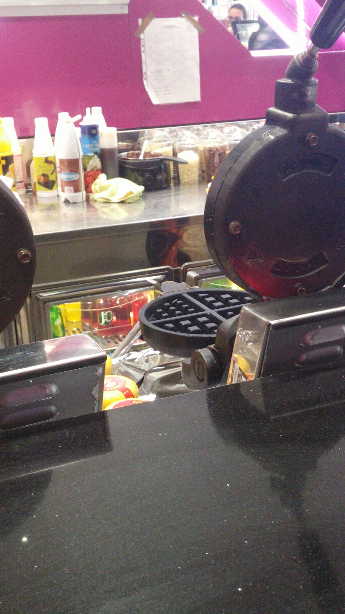 On the food front, the menu is split between ice cream sundaes, waffles & crepes, cakes and puddings. You can add all manner of further sugar laden stuff if you so wish. This extends to nutella, M&Ms and probably a bowl of sugar if you asked. I wonder if this will be how the sugar tax will be cirvumvented (which I learned to my horror may apply to tonic and thus G&Ts – grrrrr). Like the old Smiths Salt ‘n’ Shake crisps (need to be my age to remember these, although I think they still sell them along with probably rhubarb and custard flavoured ones – no more ridiculous than some have seen such as the gawd awful sounding Gin and Tonic flavoured ones from Aldi for instance), they could simply sell diet sodas stuck to a free bag of sugar for you to “voluntarily” stir/pour into your tax free soda.