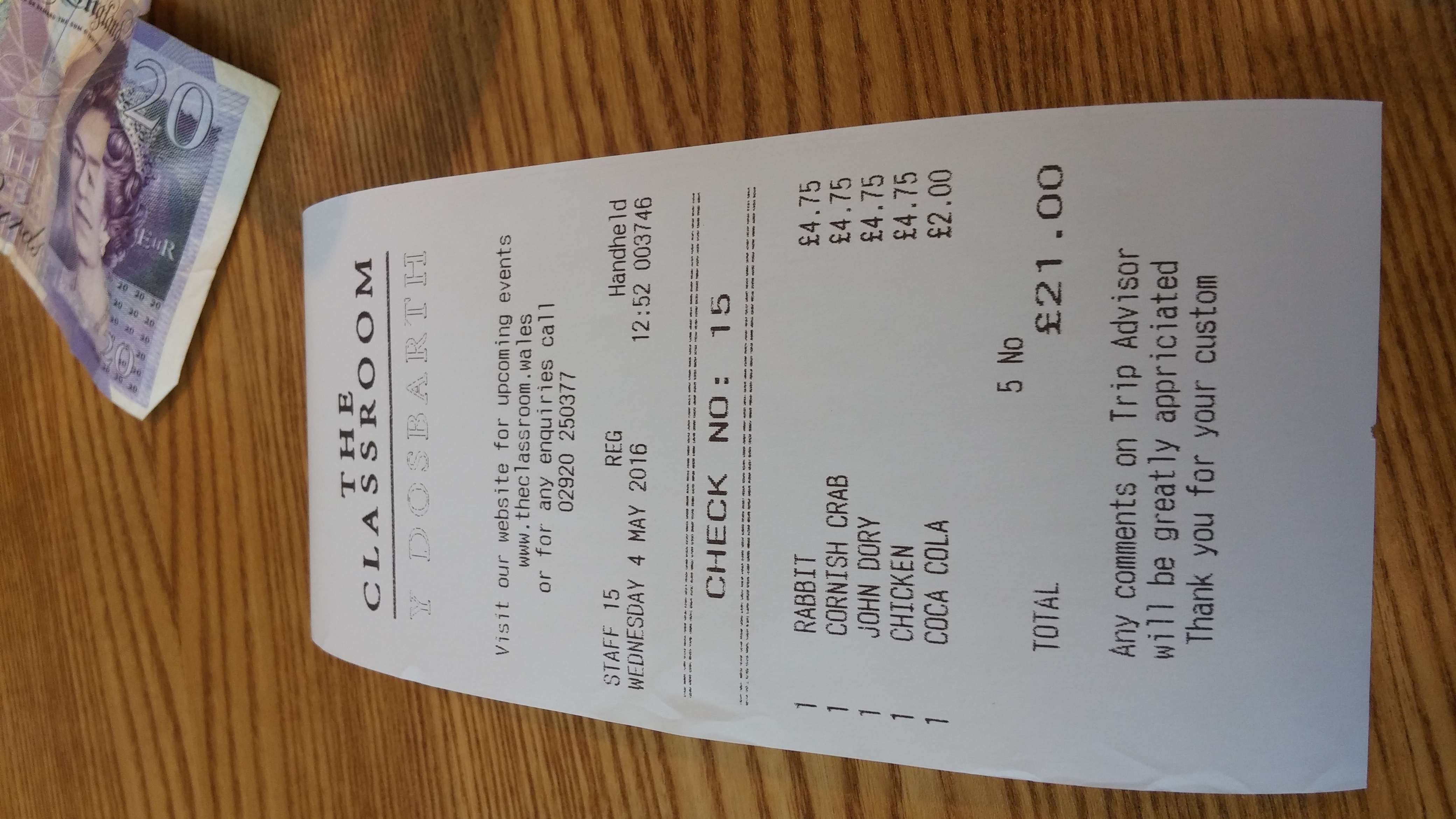 The total bill for our 2 × 2 (really top notch and very substantial) courses was £21 (inc my coke, but ex. tip which was given). Yep, you read that right – £21!