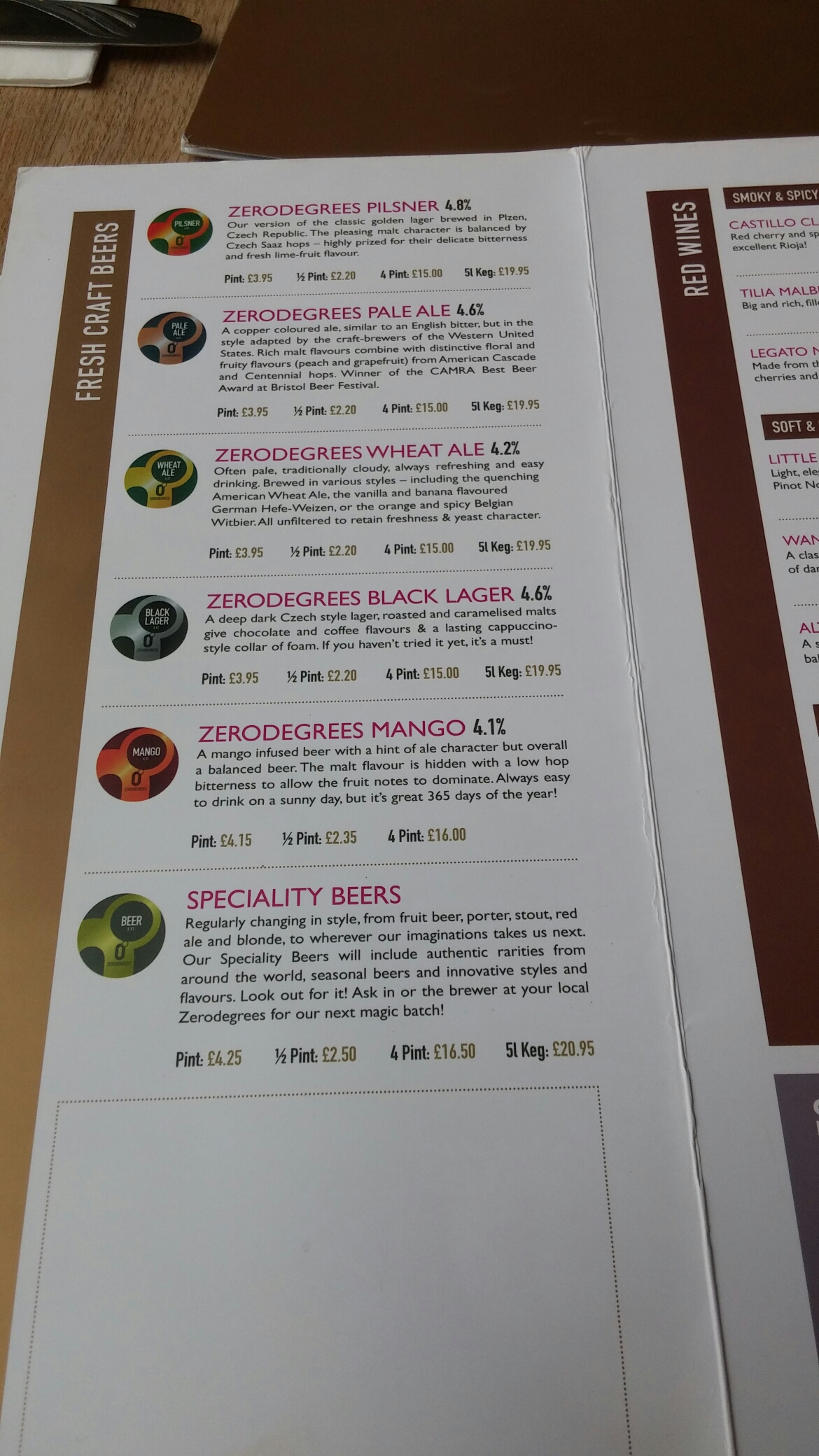 This equates to a quite astonishing £7.81 a pint – a price considerably higher than any of their beers. I know I bang on about wine mark ups, but this is a whole new level of outrageous when a 200ml bottle of this stuff retails in Tescos at 66p. Bearing in mind this would have been bought wholesale for a fair bit less, that is one hell of a mark up. Totally unacceptable to penalize non drinkers/designated drivers like this in my humble opinion.