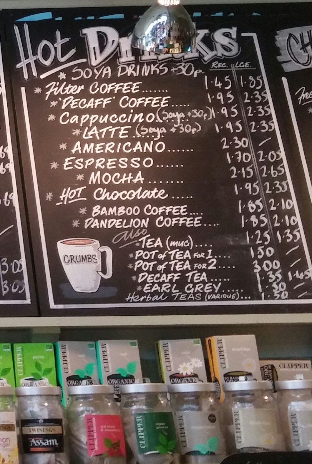 Crumbs has a decent selection of hot drinks including the option of soya for those that are adverse to dairy.