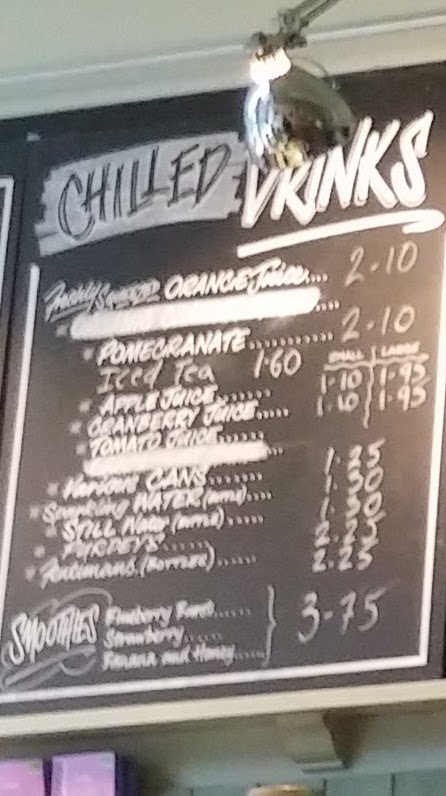 Salads seemed to be the most popular options on our visit, with prices (for eat in) ranging from £3.85 (small bowl-  a selection of 3 salads) to £5.85 (large bowl – a selection of 6 salads). To these base salads extras can be added for a variety of additional costs