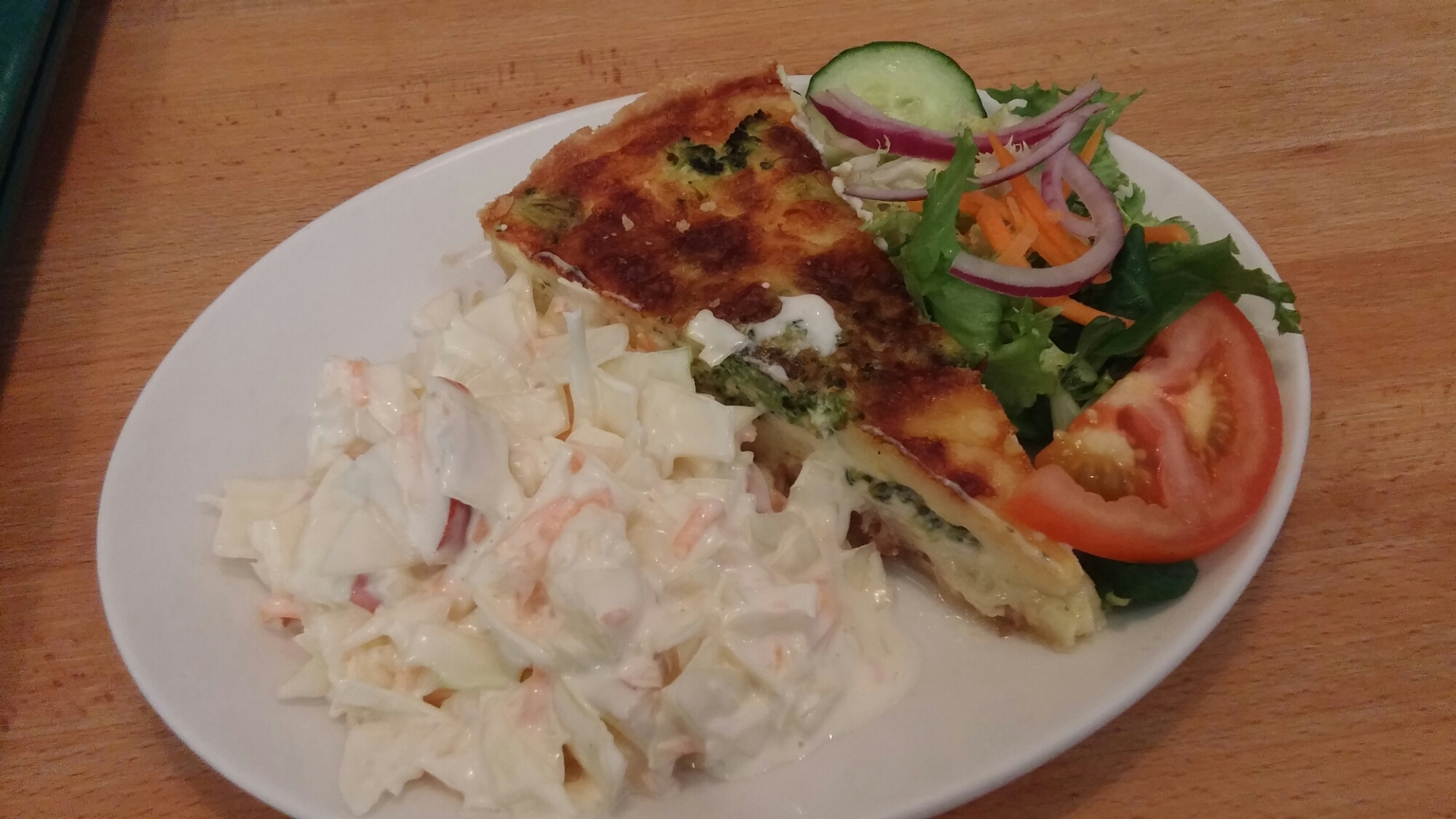 I added a nice crunchy and chunky coleslaw. For the total price of £4.65, it was a very pleasant and filling lunch. My only gripes (yes there usually is one I know, but I am afraid I am a fussy bugger) were the slightly pricey  £1.30 for the added coleslaw (it was a big portion though) and the fact that the side salad that came with the quiche was undressed. I am not at all keen on undressed salad and found it odd that this was the case here, as the place centres on salad.  Minor issues though, as over all I thought my quiche very nice.