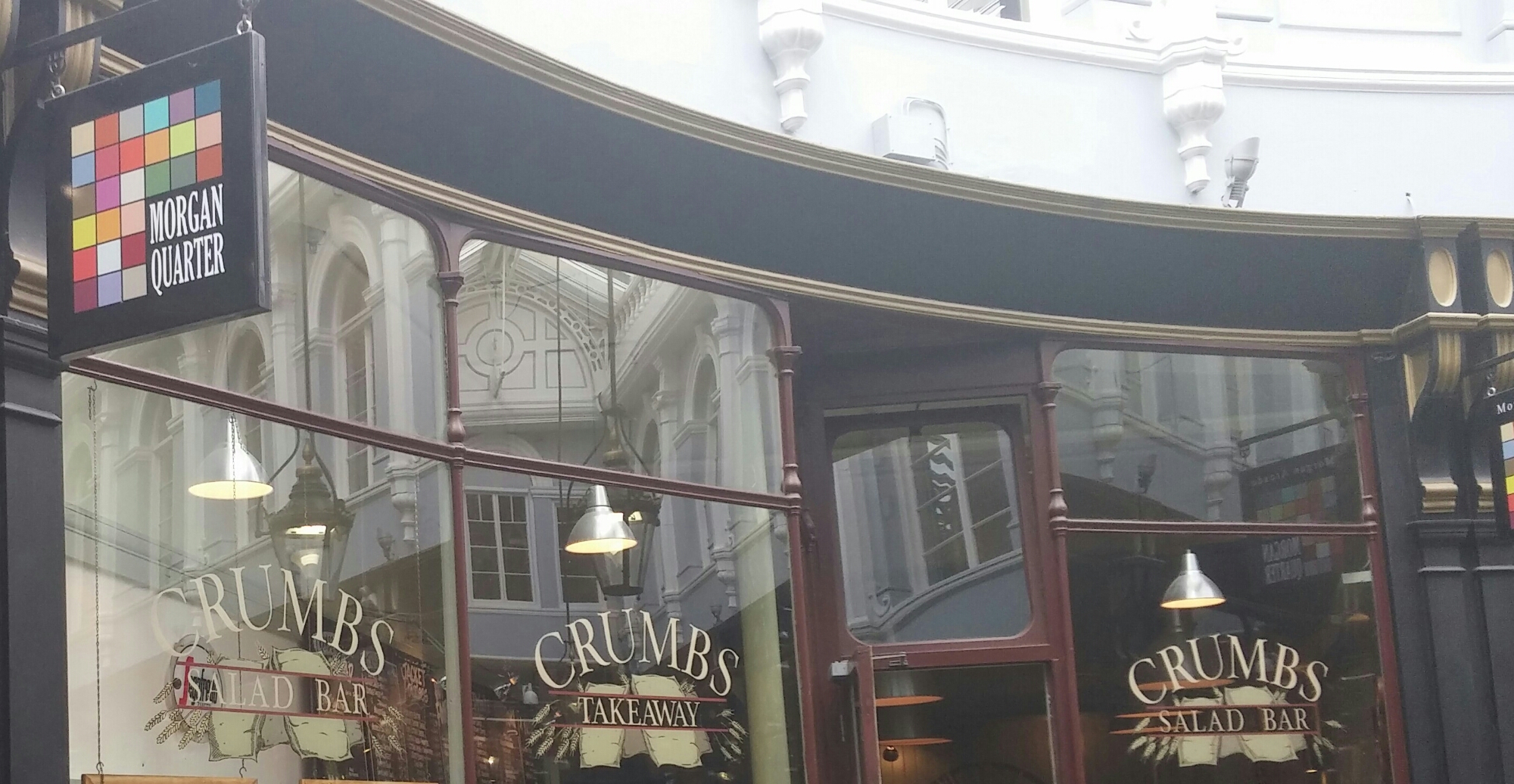 Can’t say I frequent many places that offer what I would regard as light and wholesome (always think boring rabbit food when food is described as such), but having walked past Crumbs in Morgan Arcade in Cardiff City centre (which bills itself as a vegetarian cafe) the day before it immediately sprung to mind.