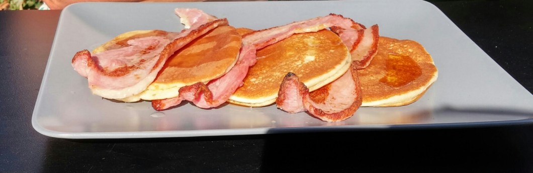 Mrs. SF toyed with the healthier options on the menu, but was drawn to the American pancakes with bacon and maple syrup (£6) Mark my words, give it 10 years and we will be being told this is a super food combo – with the only issue being not enough bacon fat and sugar – and that granola and its ilk is absolutely lethal stuff.