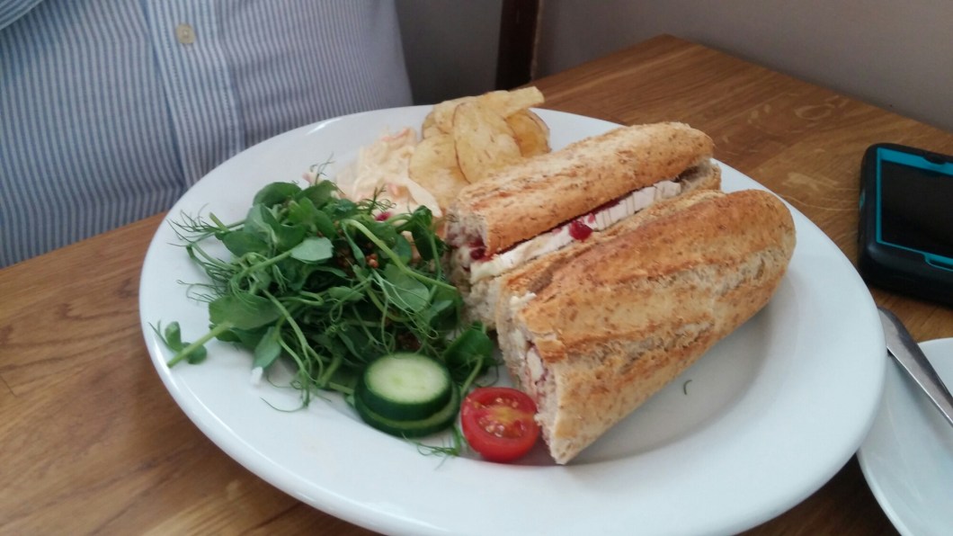 which he said was very nice. Decent filling, nice bread, with a well dressed side salad and crisps (£5.80)