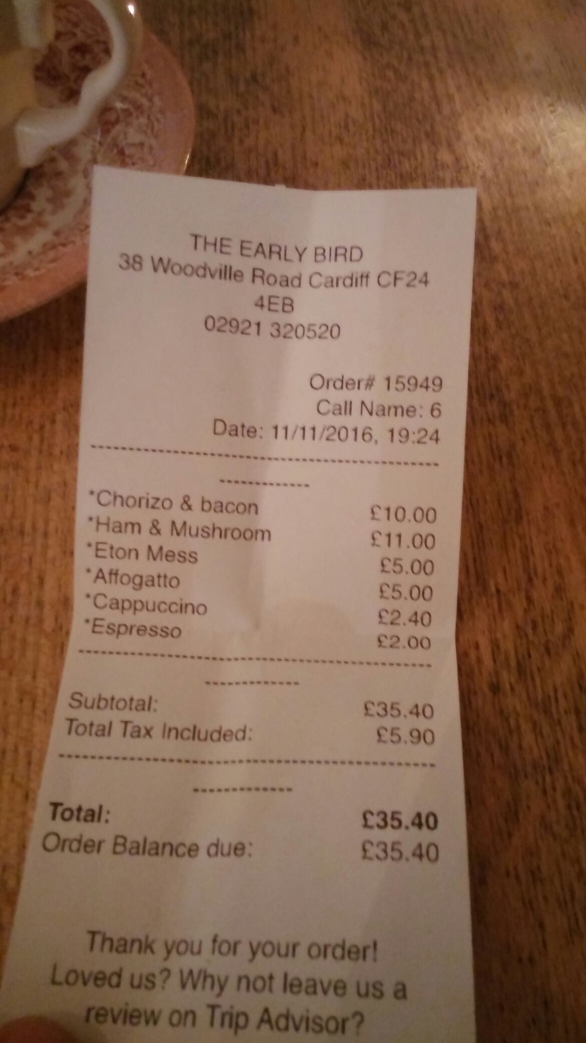 Proceeding were finished off with a good espresso (ÂŁ2) and a cappuccino (ÂŁ2.40).