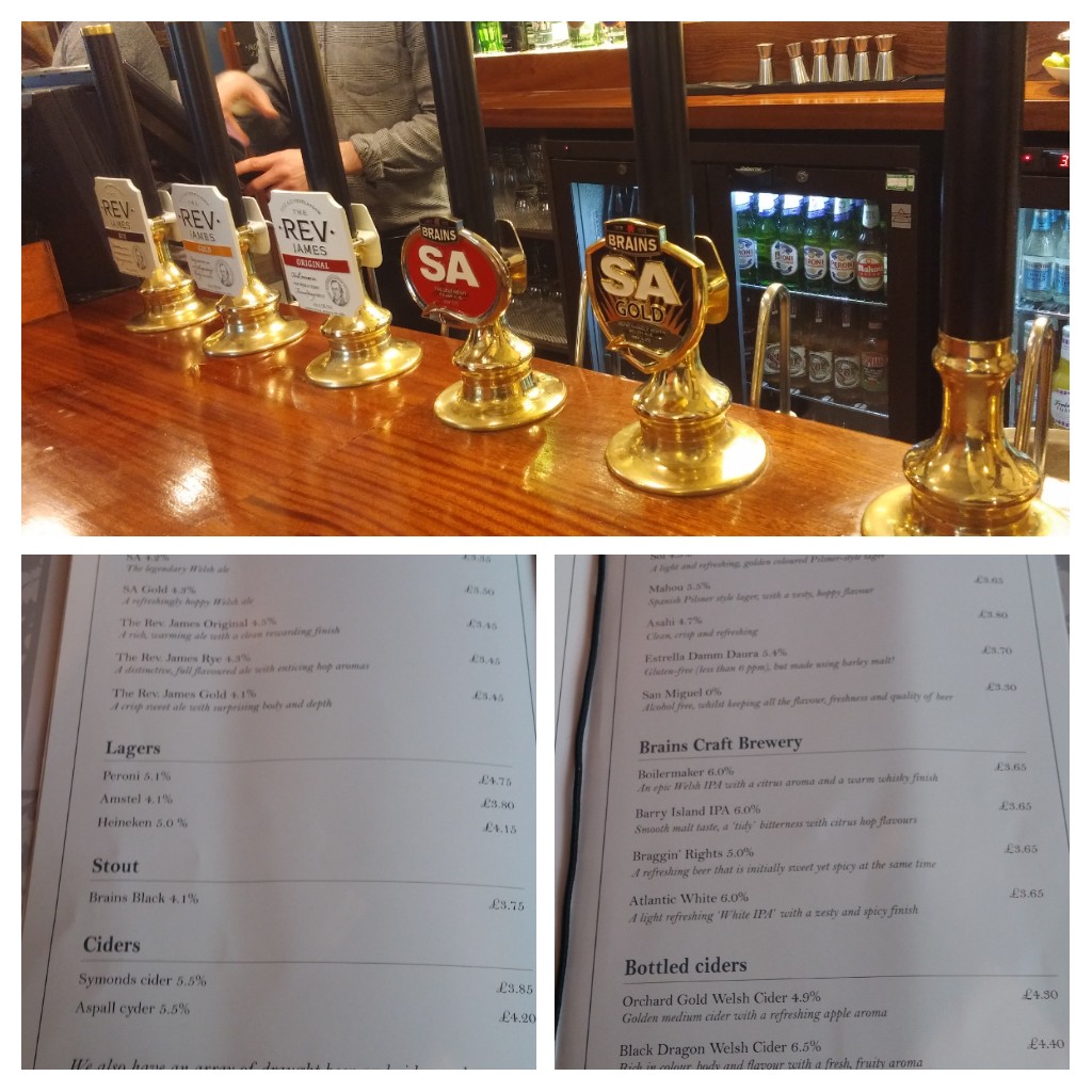 The drinks list offers a mix of keg and cask beers, of course majoring on SA Brains offerings,