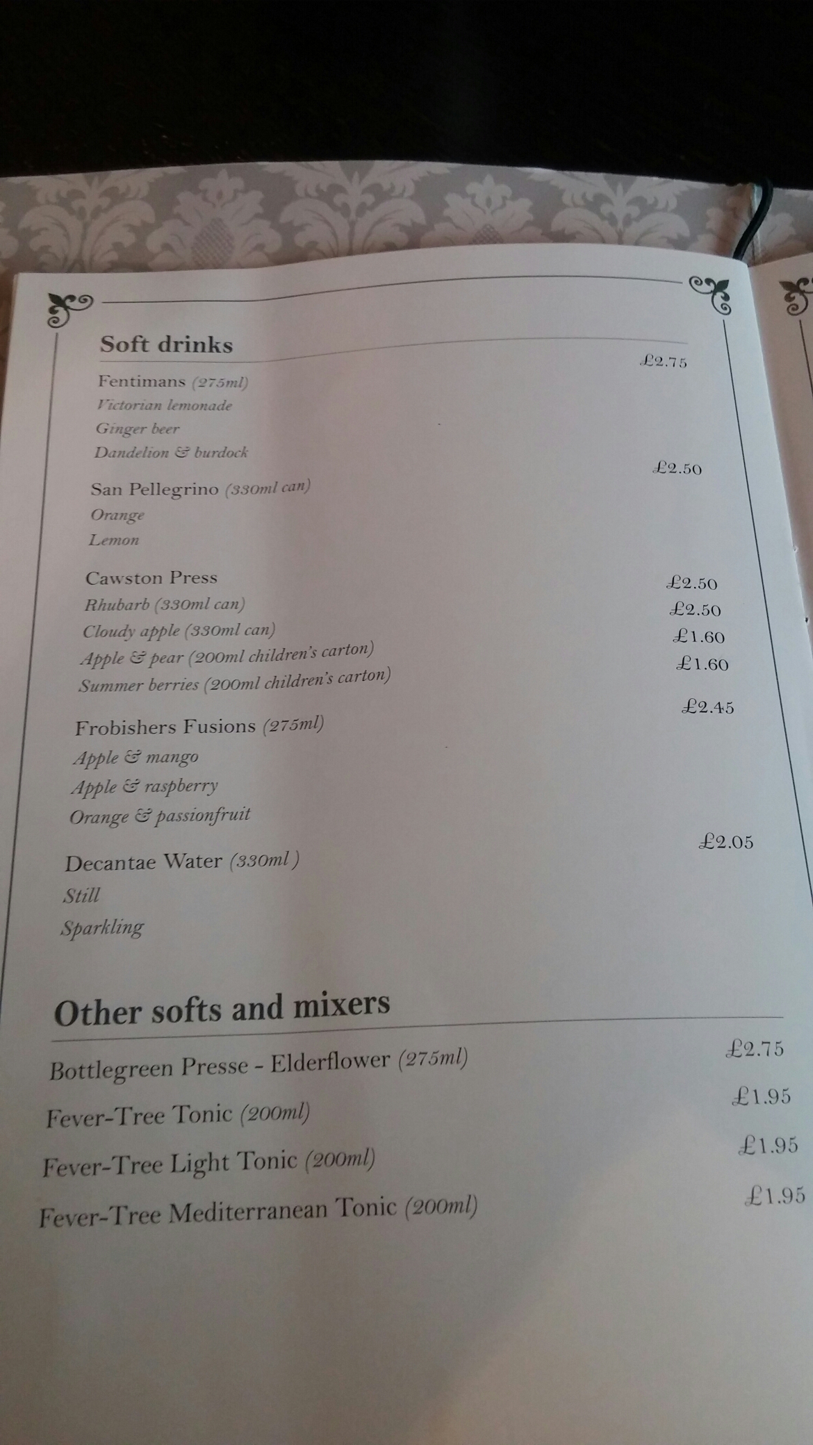 As it was a school day we were on the soft drinks and they have a fair selection on offer.