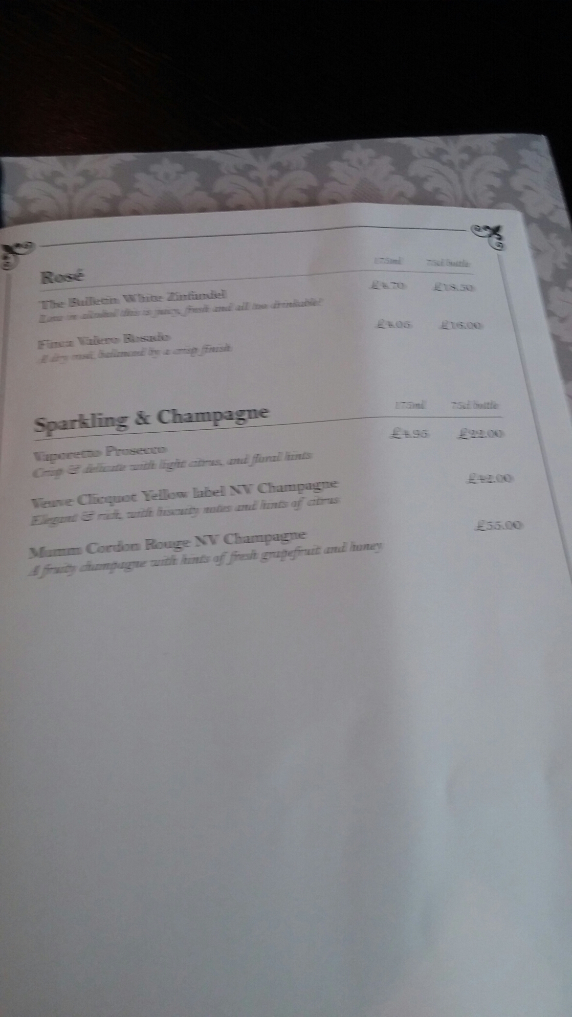 Rosés and the ubiquitous prosecco (as well as champers) are also available.