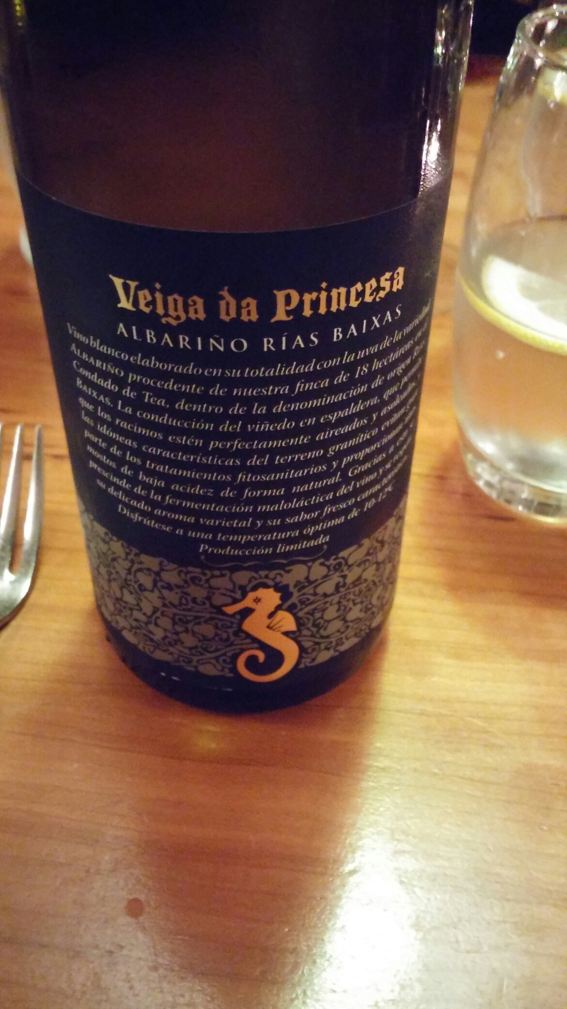 Based on our choice of starters and main course, I was torn between the gruner, riesling and albarino on the list. I decided, based on my mussels and the lack of Asian influences in the brill dish that, that seafood wine per excellence, albarino was the one for me in the form of a Vega da Princesa (£29 – around £14 retail in UK so a fair mark up).