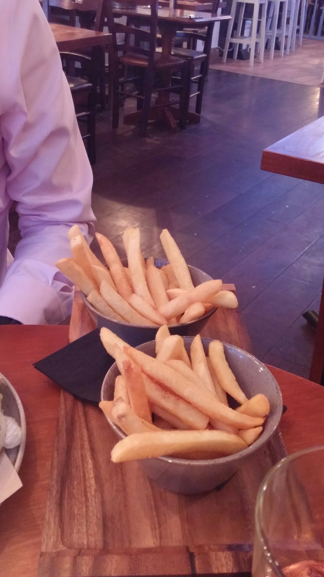 What arrived (£2.95) were nicely crisp on the outside and fluffy on the inside, but more chunky than what I regard as traditional French fries/frites. They came with a very nice pot of homemade mayo (by far and away the best condiment for fries in my humble opinion).