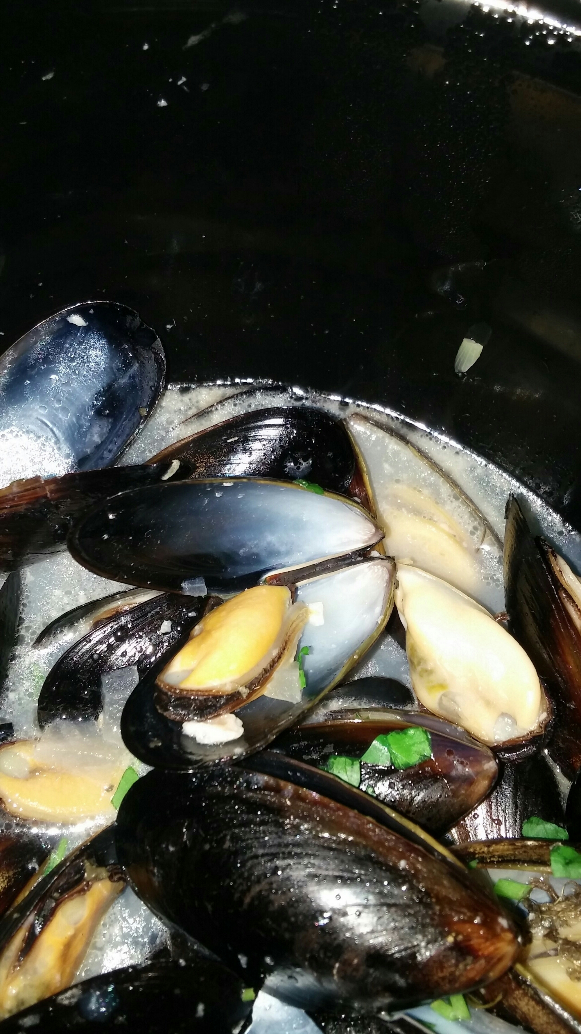A classic well done, although not perfect as there were a few broken shells in the pot. This raised the problem of whether these were open or closed after cooking (with the latter to be discarded). I erred on the side of caution with these broken ones, which meant a little bit of wastage. Also some (not all by any means) of the mussels were a bit on the dinky side – more the ” mussels” of Olive Oyl than Popeye. Did I get ones from the bottom of the sack I wonder?