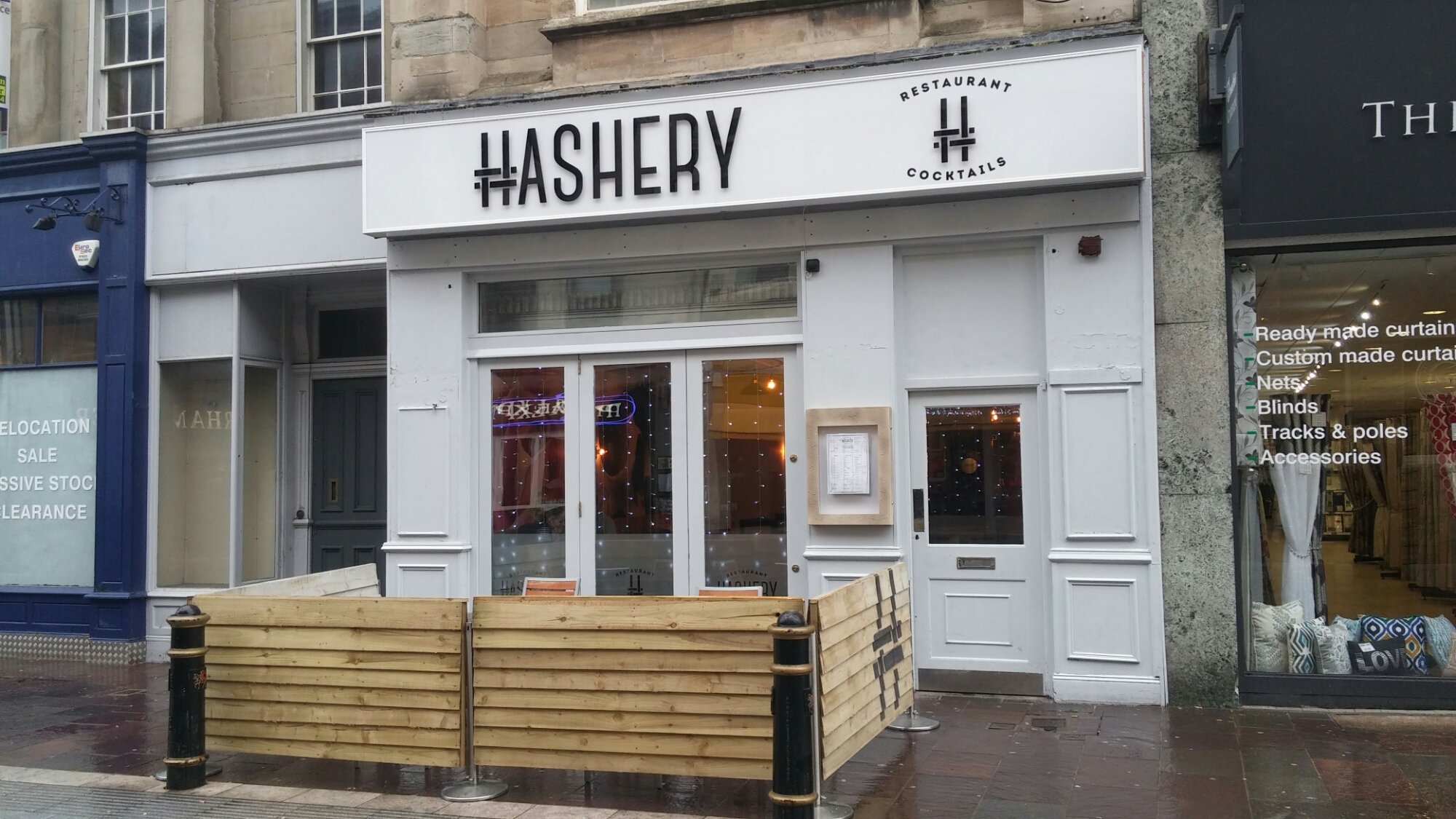 To be honest a nuclear waste dump would have been welcome on the site in question as opposed to what was there before, in the form of Bella Italia (a faux Italian of the worst kind), so the quite inviting façade and offer of mussels/moules at the Hashery was on the face of it very appealing.