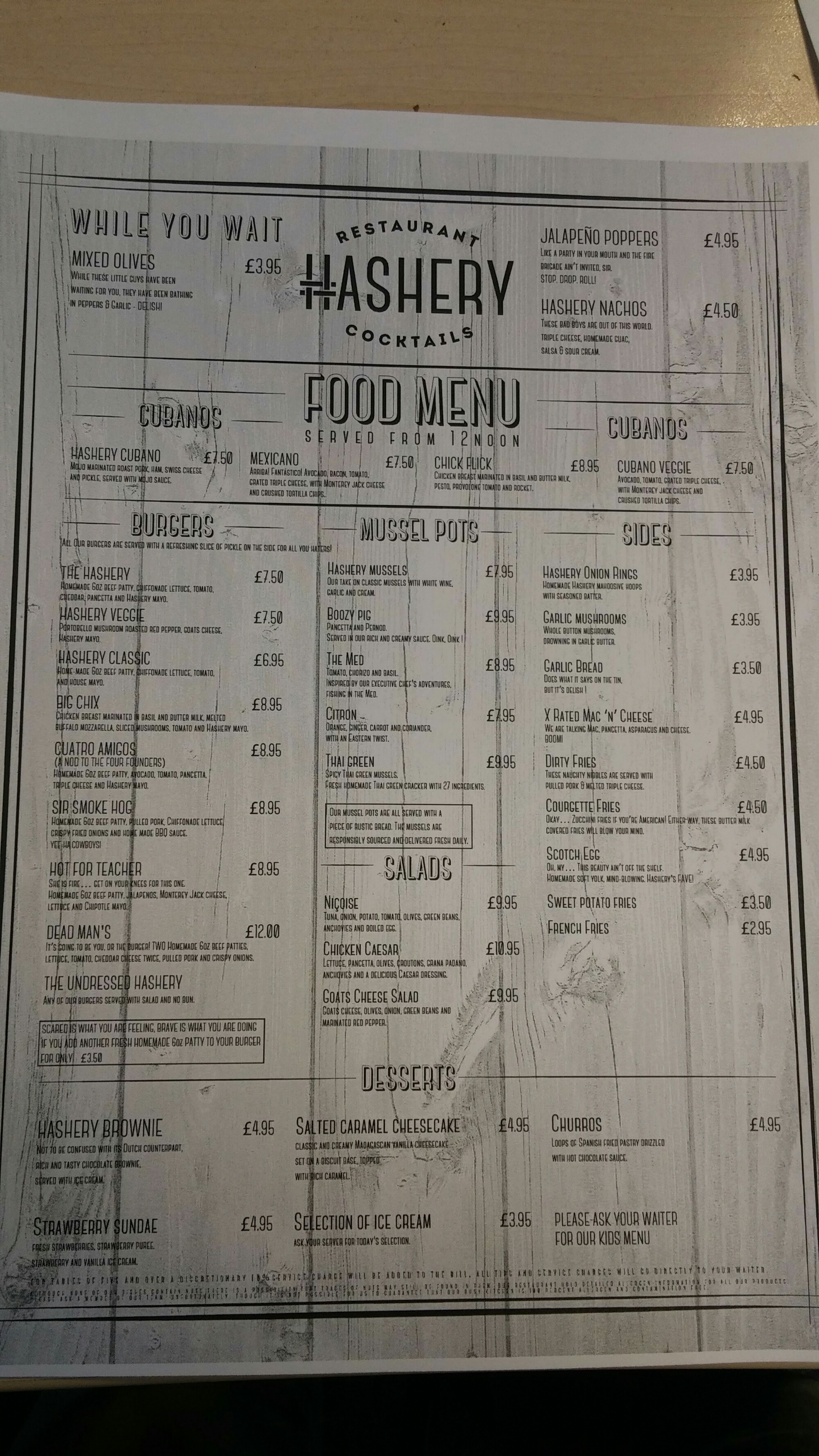 This brings me to the Hashery, a recently opened restaurant on the High Street in Cardiff City centre, whose menu covers mussel pots, burgers, cubanos (the plural re the latter being a moot point – more on that later) and salads.