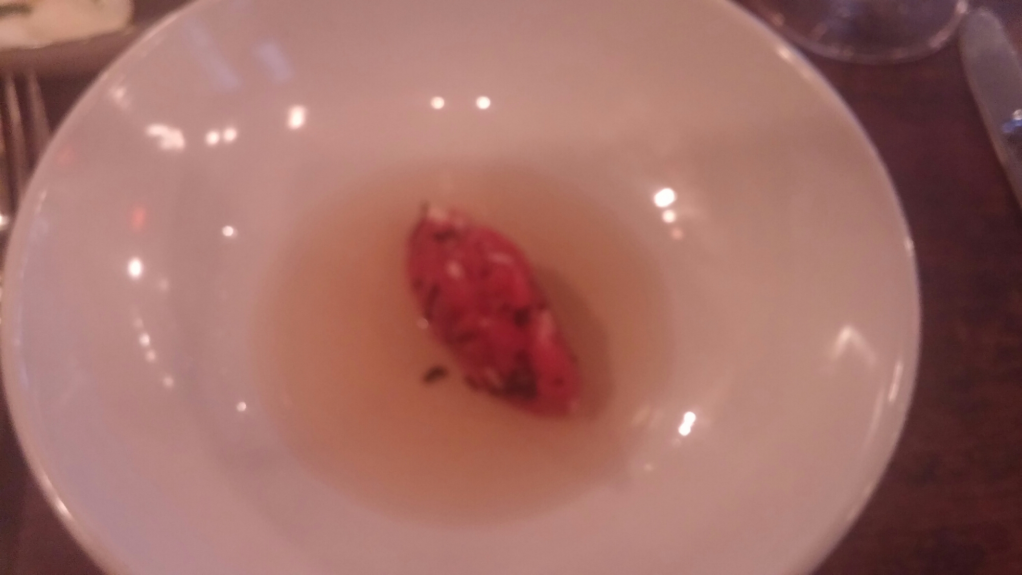 Price wise, the 6 (in reality 7 if you count the beef and oyster elements as 2) courses were a smidgen over £40 a head. With the extra cheese course and the booze, we paid (sans a tip) just over £130 all in. Not cheap (we did go in heavy on the booze), but certainly well worth it. I have paid a lot more for far less enjoyable meals.