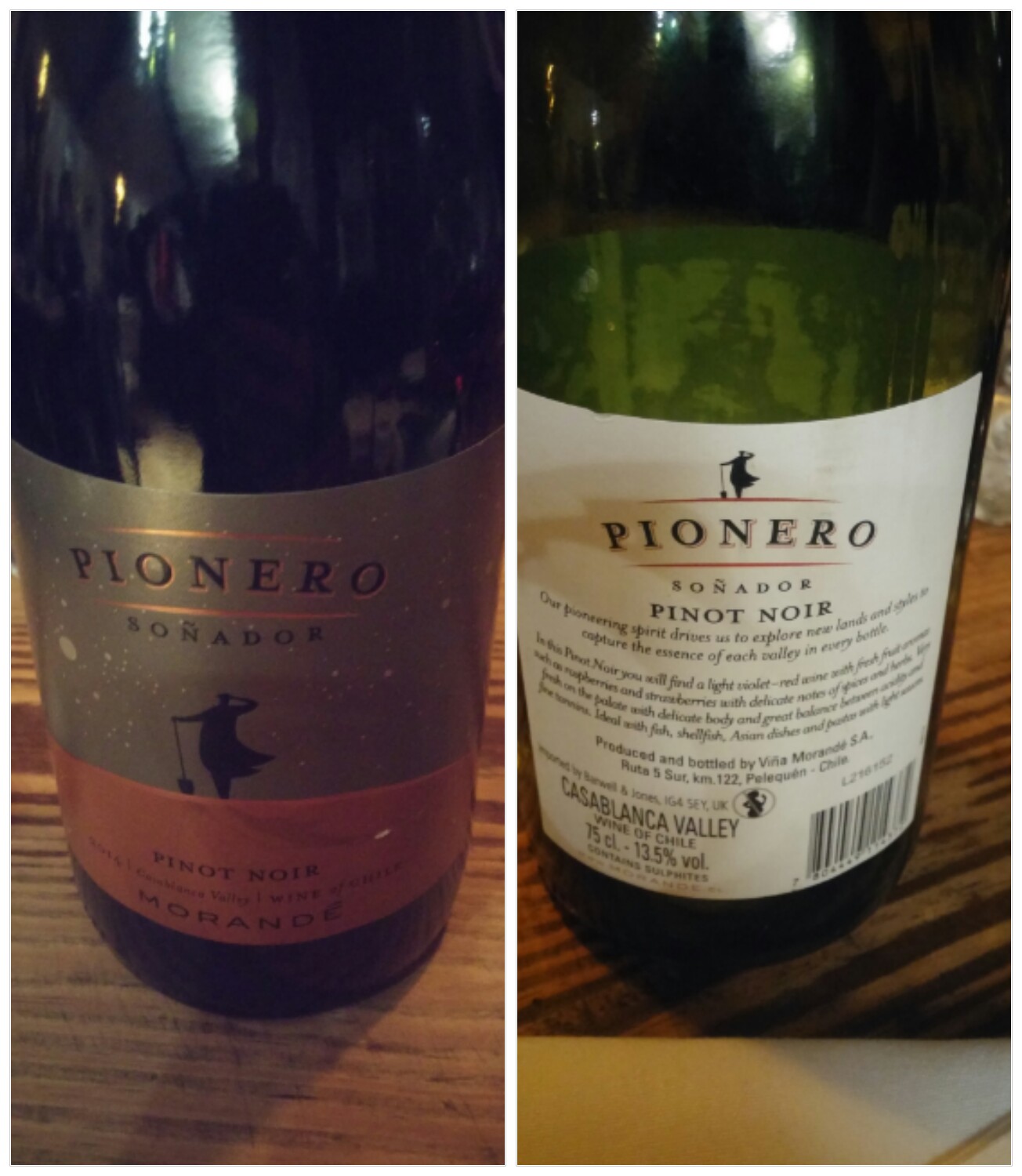After much humming and harring, but for the opposite reason to my indecision regarding the food menu, I eventually went for a bottle of the Morande Pionero Pinot Noir (£26) from Chile.