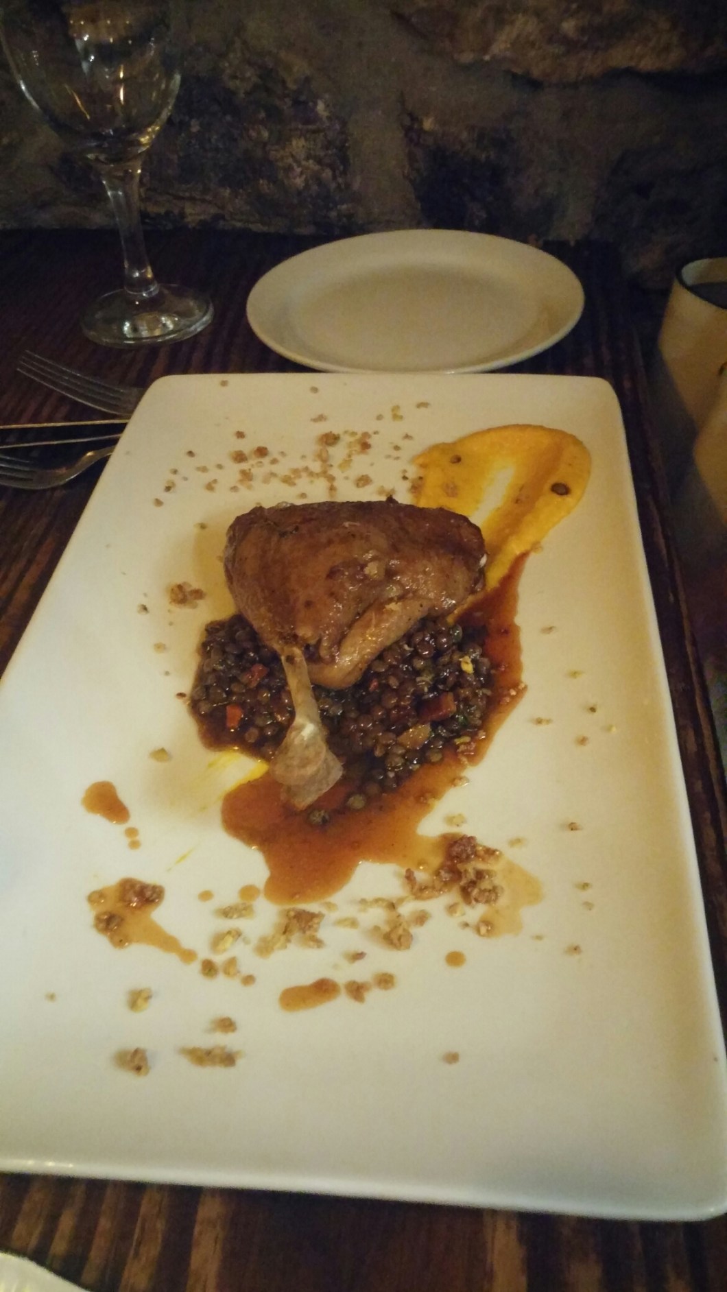 A nice enough wine, if a little limited, it was a bit overwhelmed by the lamb (which was crying out for a good Ribera del Duero – none on list – or Rioja number – I refuse to pay £28 for the Rioja on the list when it can be had for £19 elsewhere in Cardiff). It did, however, work well enough with the duck starter and pork main.